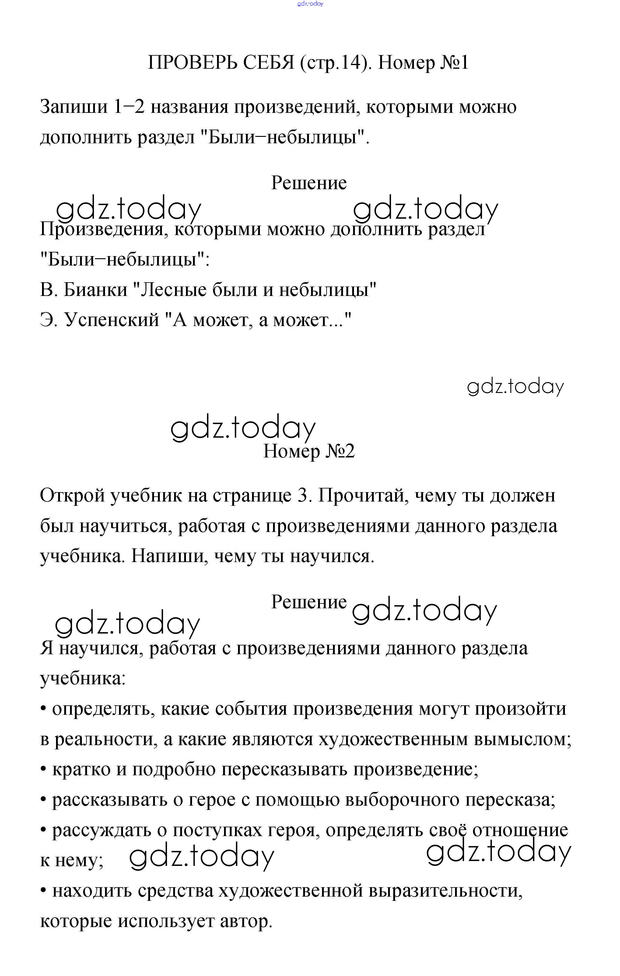 На страницах сайта gdz.today вы найдете учебный и вспомогательный материал, направленный на улучшения знаний школьной программы. ГДЗ - онлайн мир знаний Решение к части 2 (Страницы)  14 Рабочей тетради по Литературному чтению для 3 класса Тихомирова  Экзамен УМК 2021