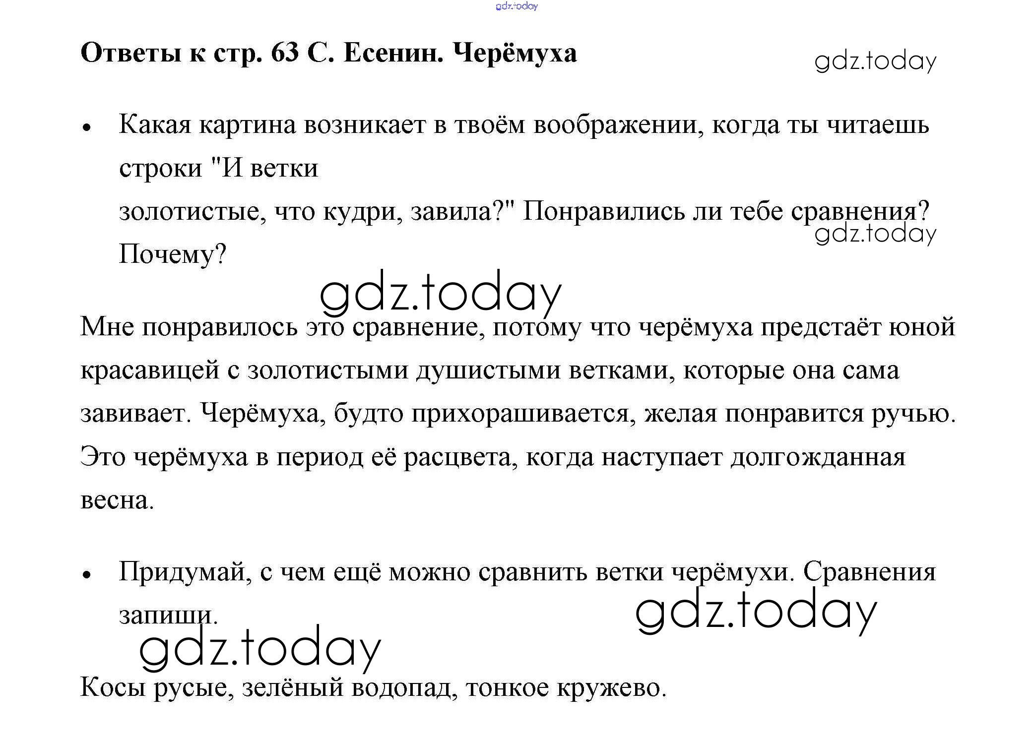 Ответы к Страницы (решение) 63 Рабочей тетради по Литературному чтению для 3 класса Бойкина, Виноградская Просвещение Школа России 2018