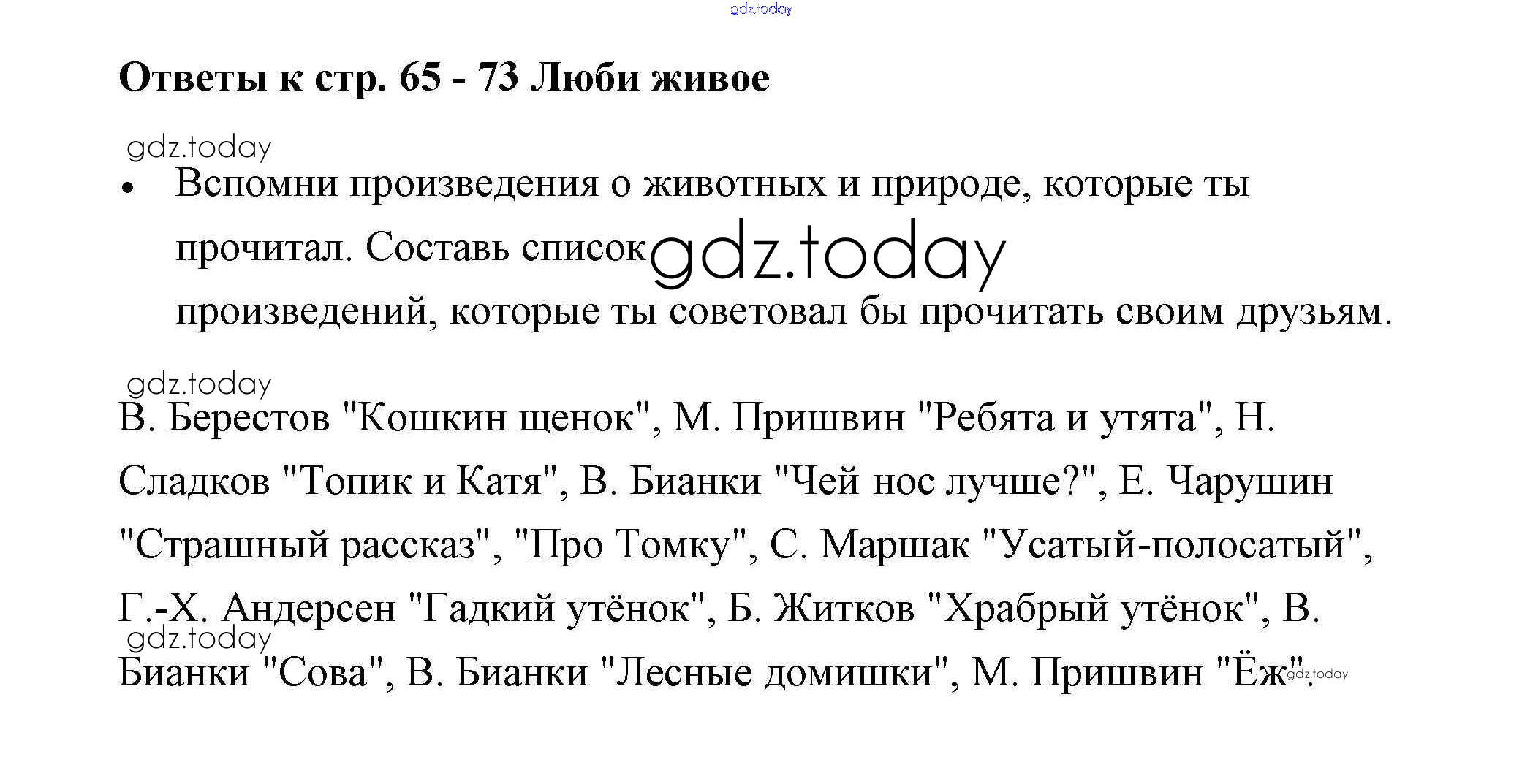 На страницах сайта gdz.today вы найдете учебный и вспомогательный материал, направленный на улучшения знаний школьной программы. ГДЗ - онлайн мир знаний Страницы (решение) 65-73 Рабочей тетради по Литературному чтению для 3 класса Бойкина, Виноградская Просвещение Школа России 2018