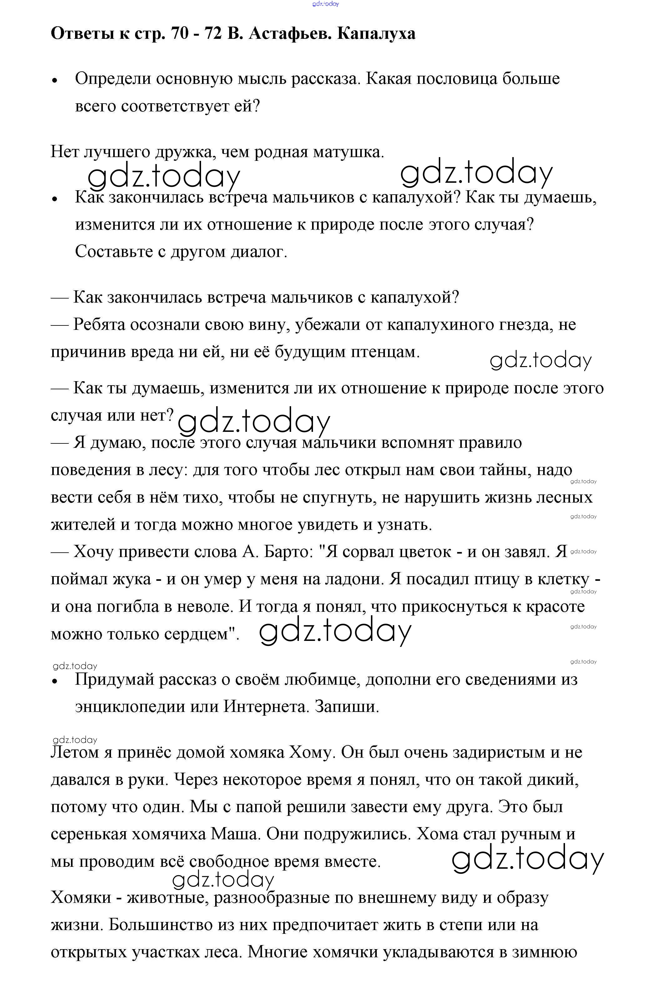 Ответы к Страницы (решение) 70-72 Рабочей тетради по Литературному чтению для 3 класса Бойкина, Виноградская Просвещение Школа России 2018