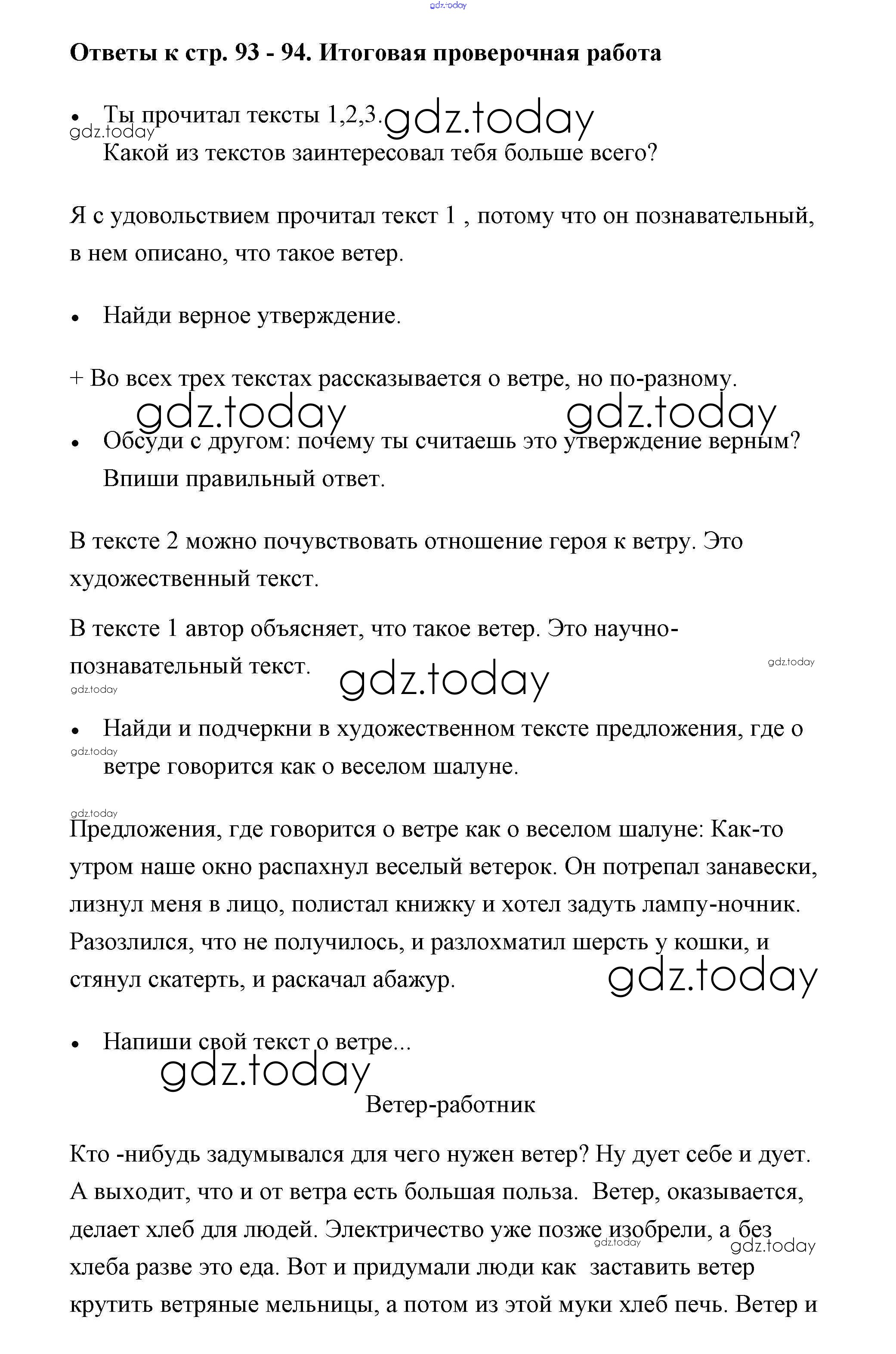 На страницах сайта gdz.today вы найдете учебный и вспомогательный материал, направленный на улучшения знаний школьной программы. ГДЗ - онлайн мир знаний Страницы (решение) 93-94 Рабочей тетради по Литературному чтению для 3 класса Бойкина, Виноградская Просвещение Школа России 2018