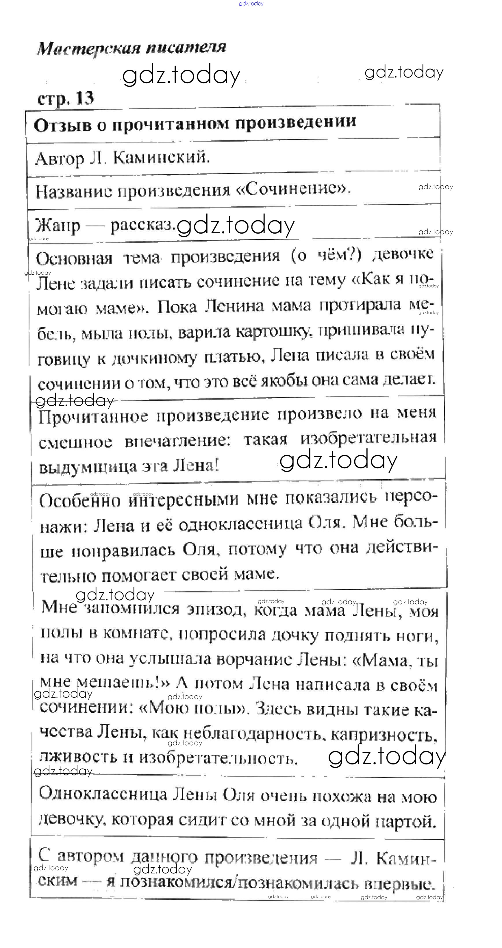 На страницах сайта gdz.today вы найдете учебный и вспомогательный материал, направленный на улучшения знаний школьной программы. ГДЗ - онлайн мир знаний Страницы (решение) 13 Творческой тетради по Литературному чтению для 3 класса Коти Просвещение Перспектива 2015