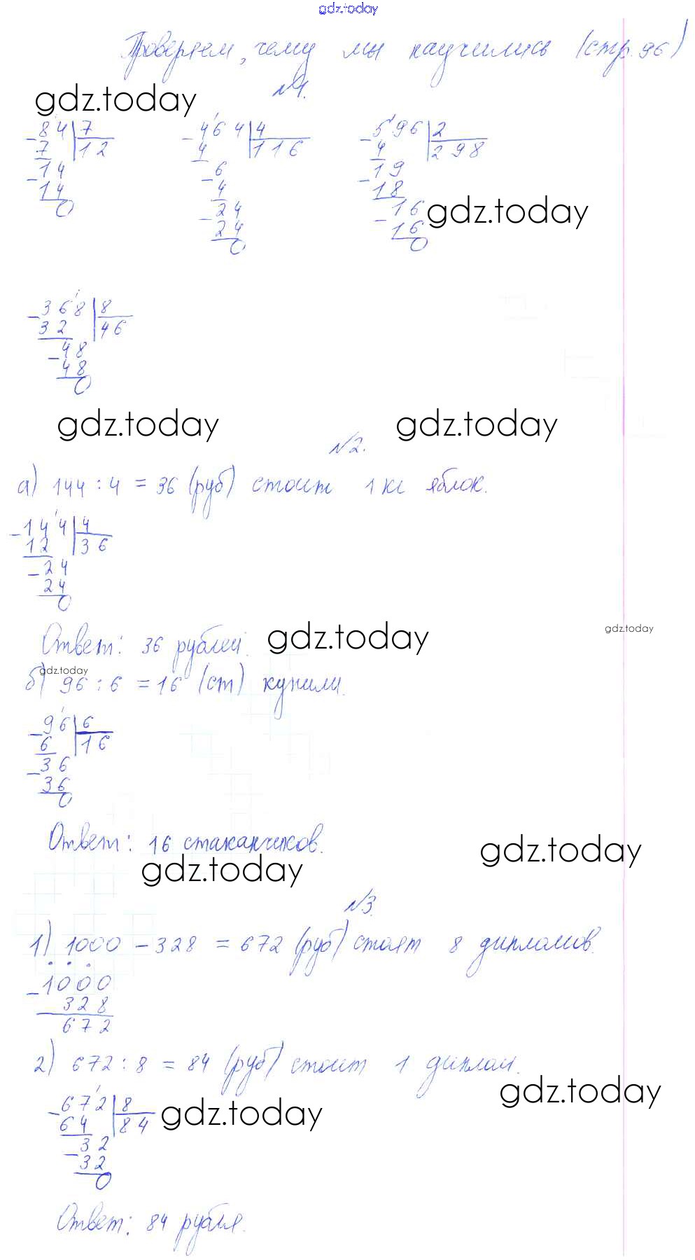 Ответы к Проверяем чему научились Решение к части 2 стр. 96 Учебнику по Математике для 3 класса Башмаков, Нефедова Аст/Астрель Планета знаний 2013