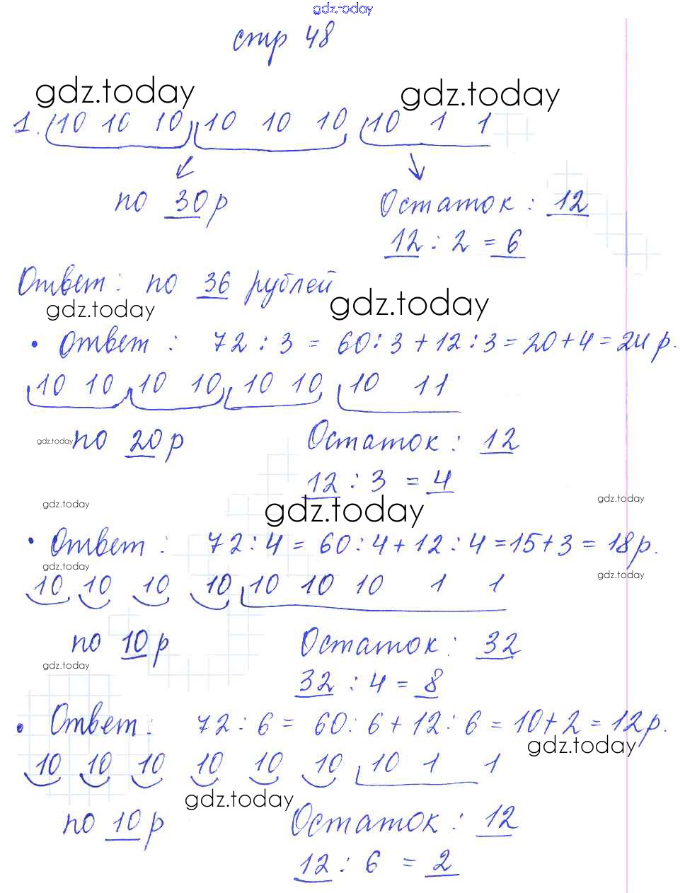 Ответы к Решение. Тетрадь №1. Страницы 48 Рабочей тетради по Математике для 3 класса Башмаков, Нефедова Аст/Астрель Планета знаний 2016