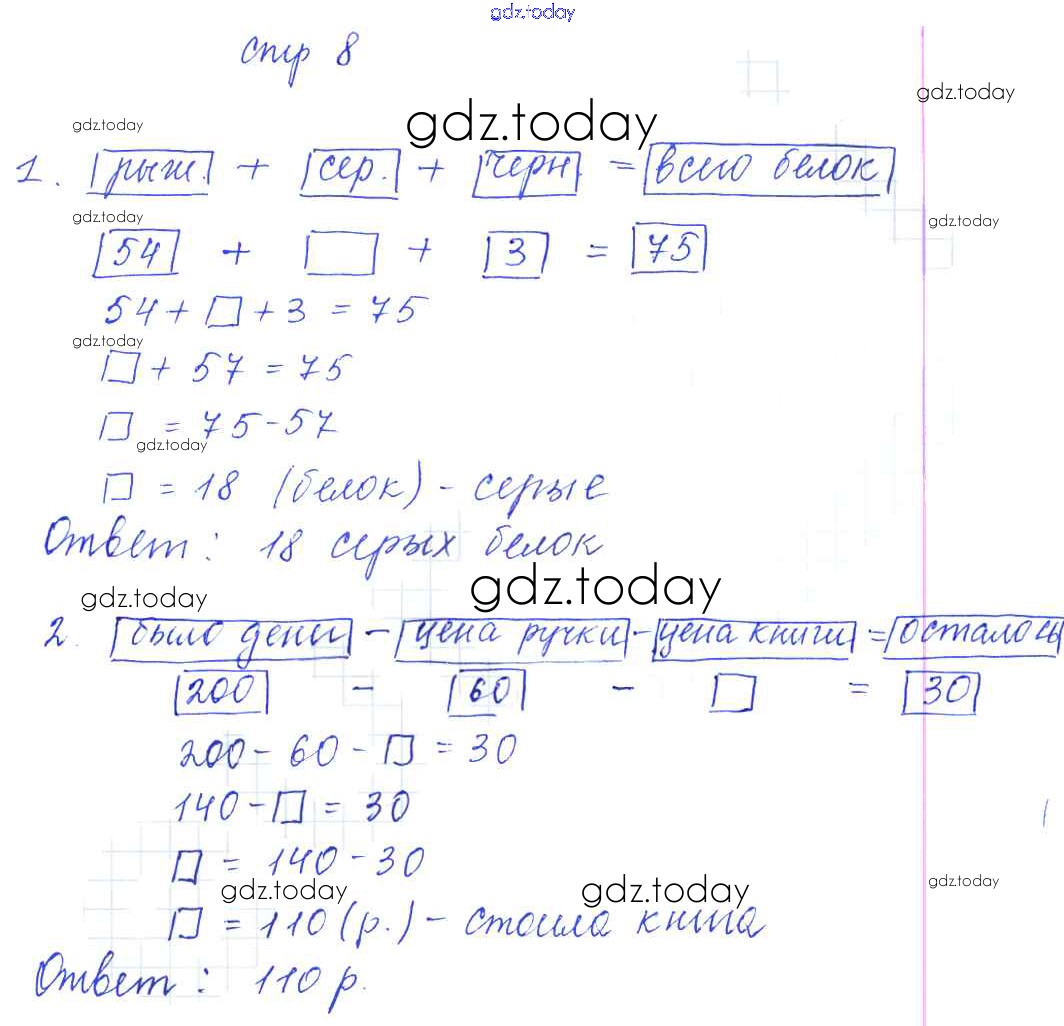 Ответы к Решение. Тетрадь №2. Страницы 8 Рабочей тетради по Математике для 3 класса Башмаков, Нефедова Аст/Астрель Планета знаний 2016