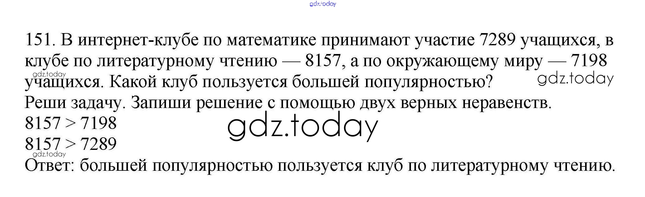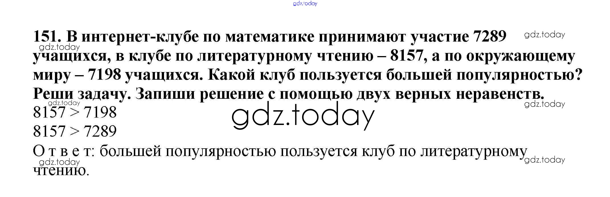 На страницах сайта gdz.today вы найдете учебный и вспомогательный материал, направленный на улучшения знаний школьной программы. ГДЗ - онлайн мир знаний Решение к части 1 (упражнения) 151 Учебнику по Математике для 3 класса Чекин Академкнига Перспективная начальная школа 2016