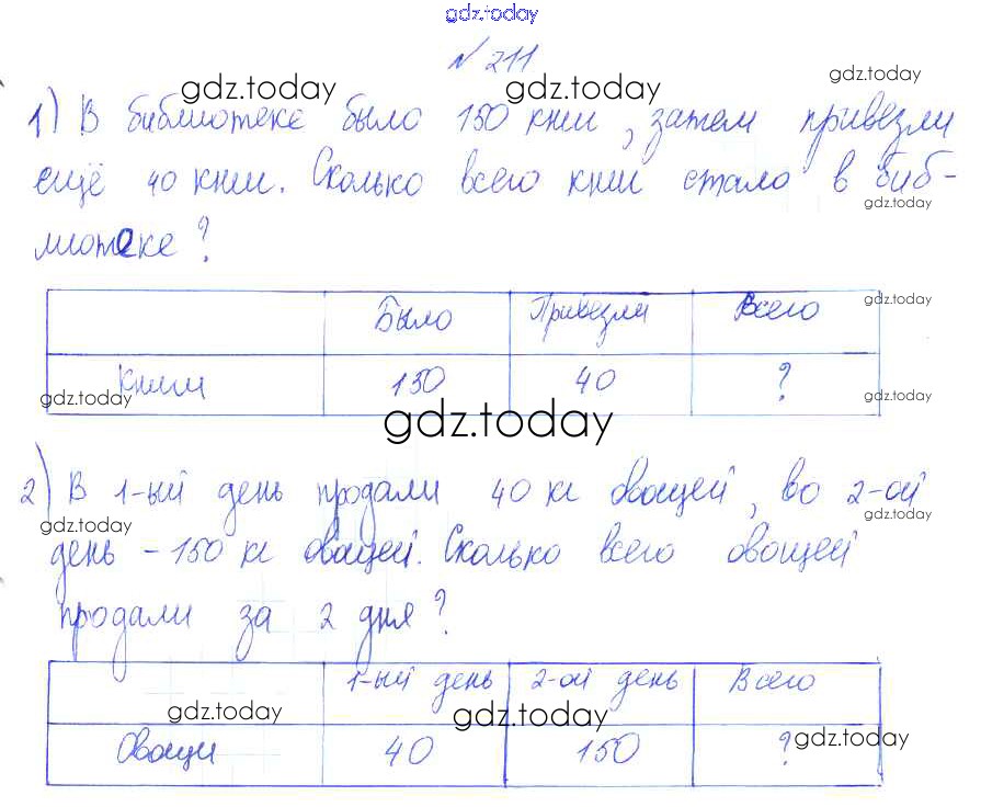 На страницах сайта gdz.today вы найдете учебный и вспомогательный материал, направленный на улучшения знаний школьной программы. ГДЗ - онлайн мир знаний Решение к части 1 (упражнения) 211 Учебнику по Математике для 3 класса Чекин Академкнига Перспективная начальная школа 2016