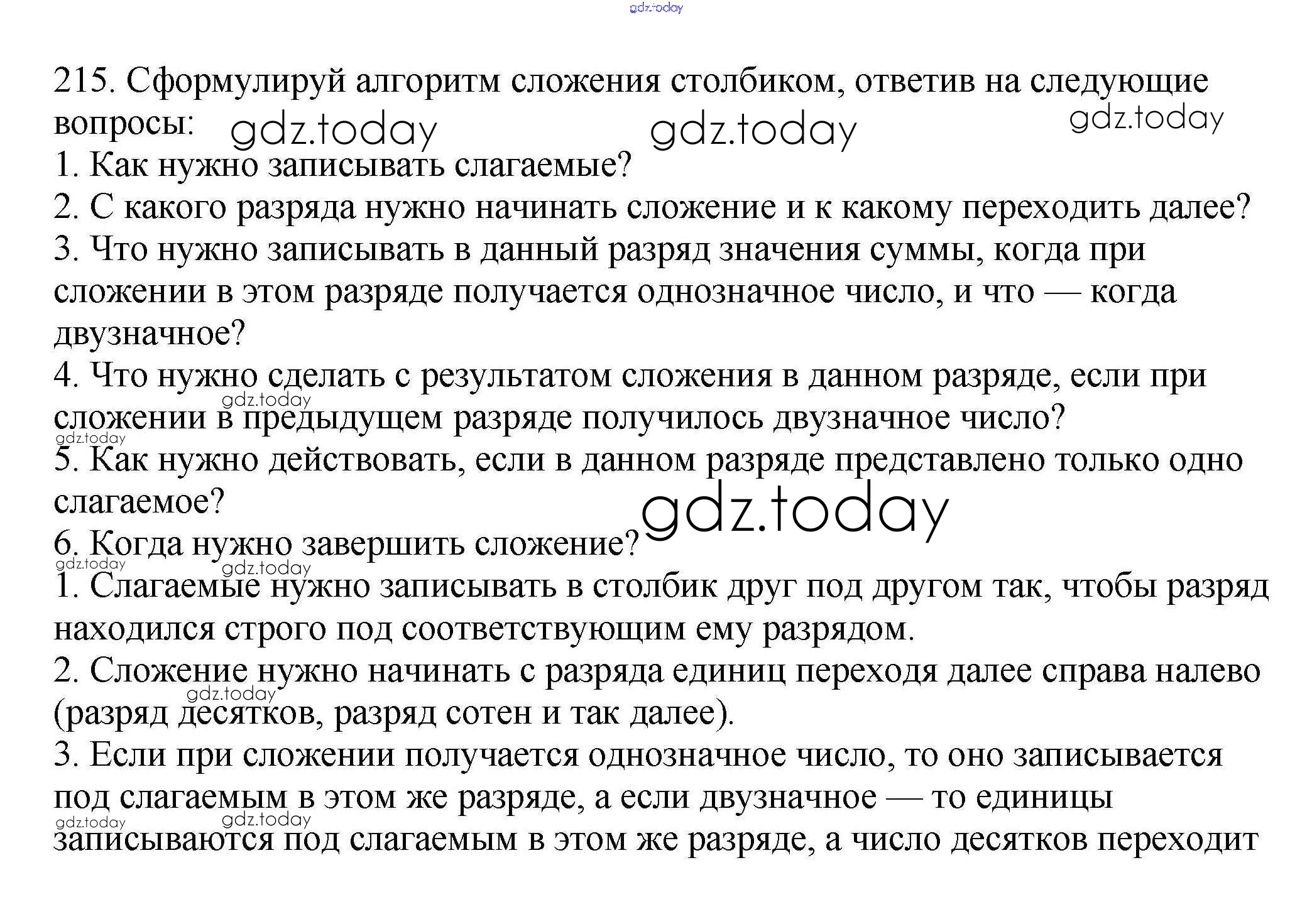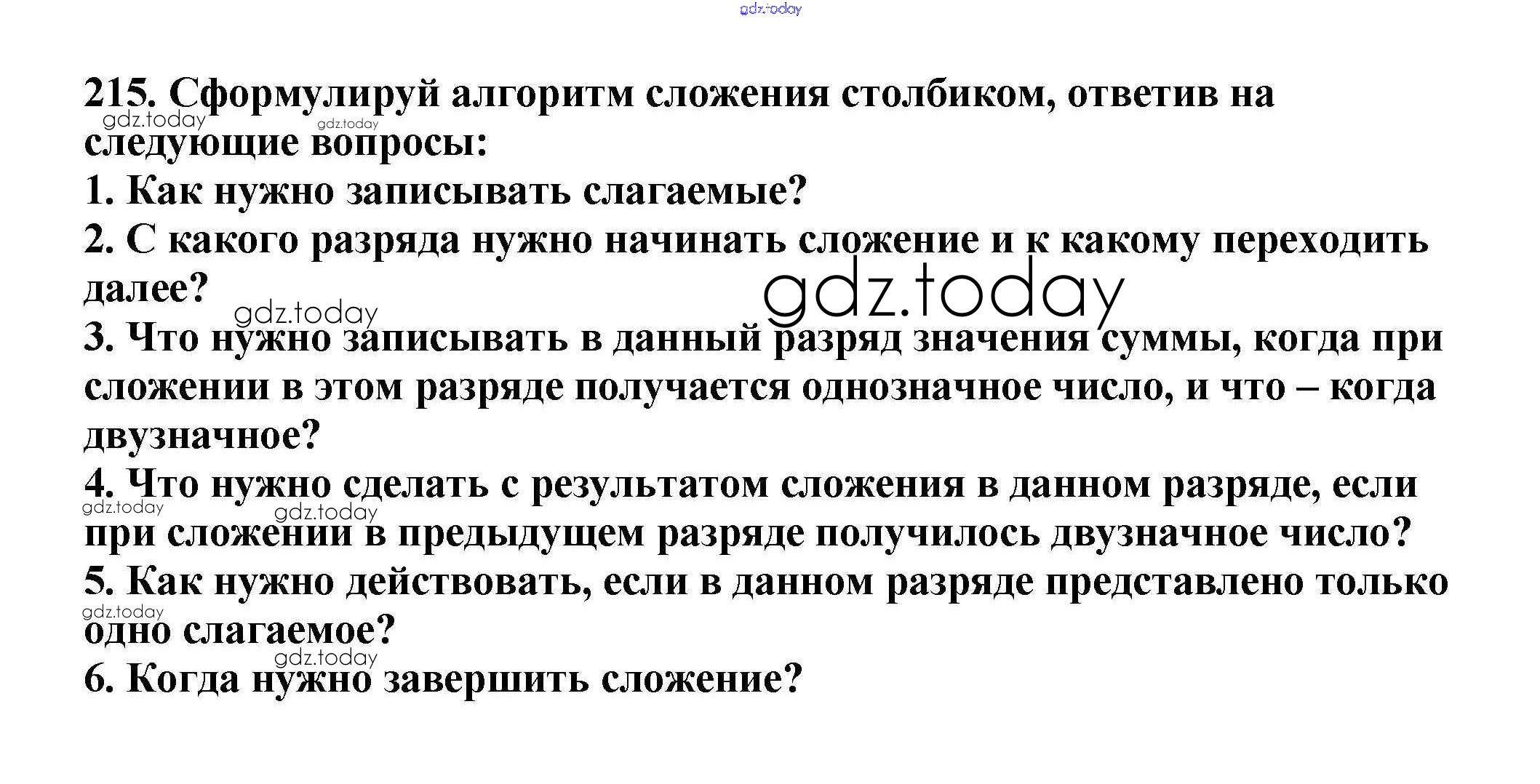 На страницах сайта gdz.today вы найдете учебный и вспомогательный материал, направленный на улучшения знаний школьной программы. ГДЗ - онлайн мир знаний Решение к части 1 (упражнения) 215 Учебнику по Математике для 3 класса Чекин Академкнига Перспективная начальная школа 2016