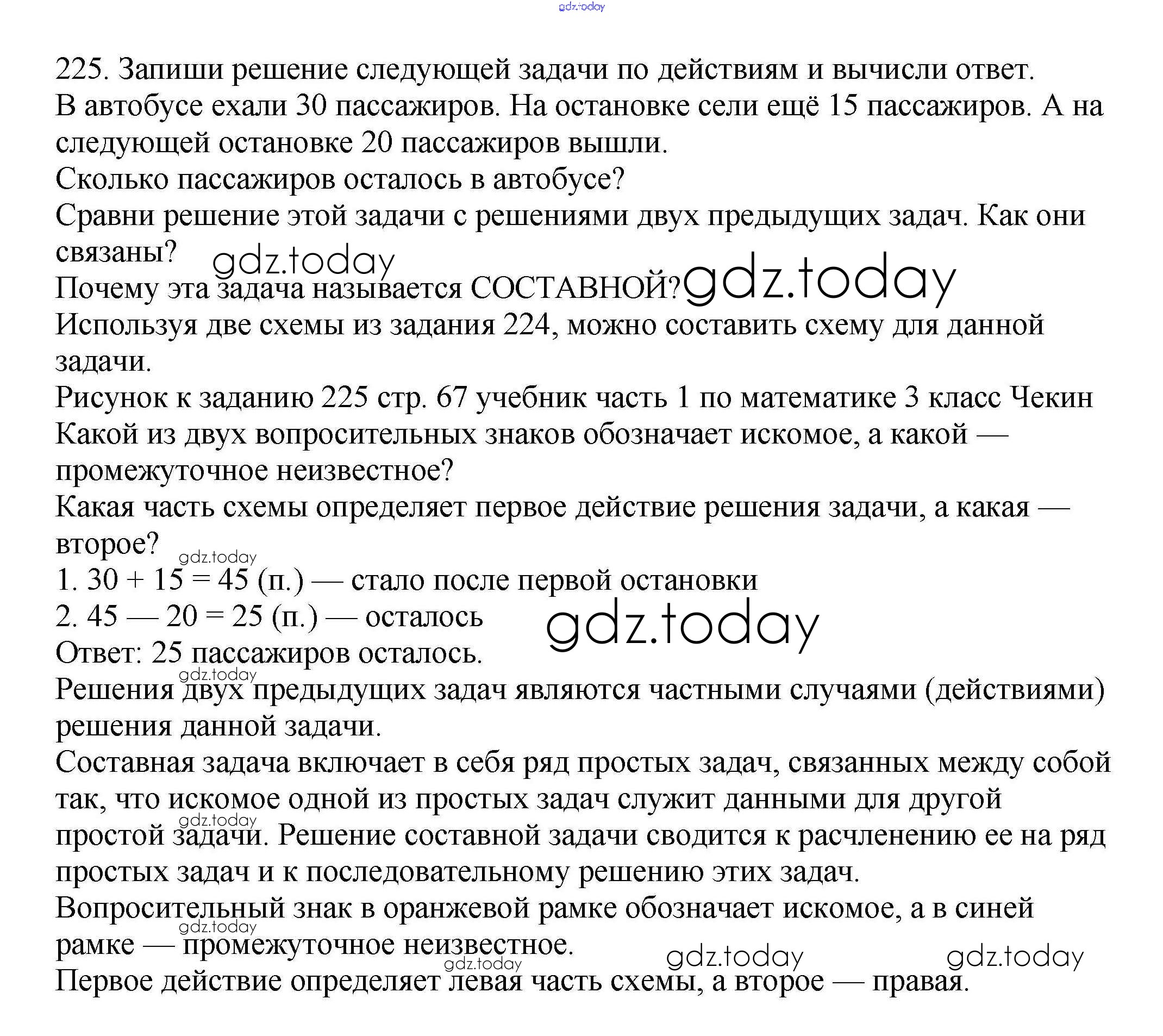 На страницах сайта gdz.today вы найдете учебный и вспомогательный материал, направленный на улучшения знаний школьной программы. ГДЗ - онлайн мир знаний Решение к части 1 (упражнения) 225 Учебнику по Математике для 3 класса Чекин Академкнига Перспективная начальная школа 2016
