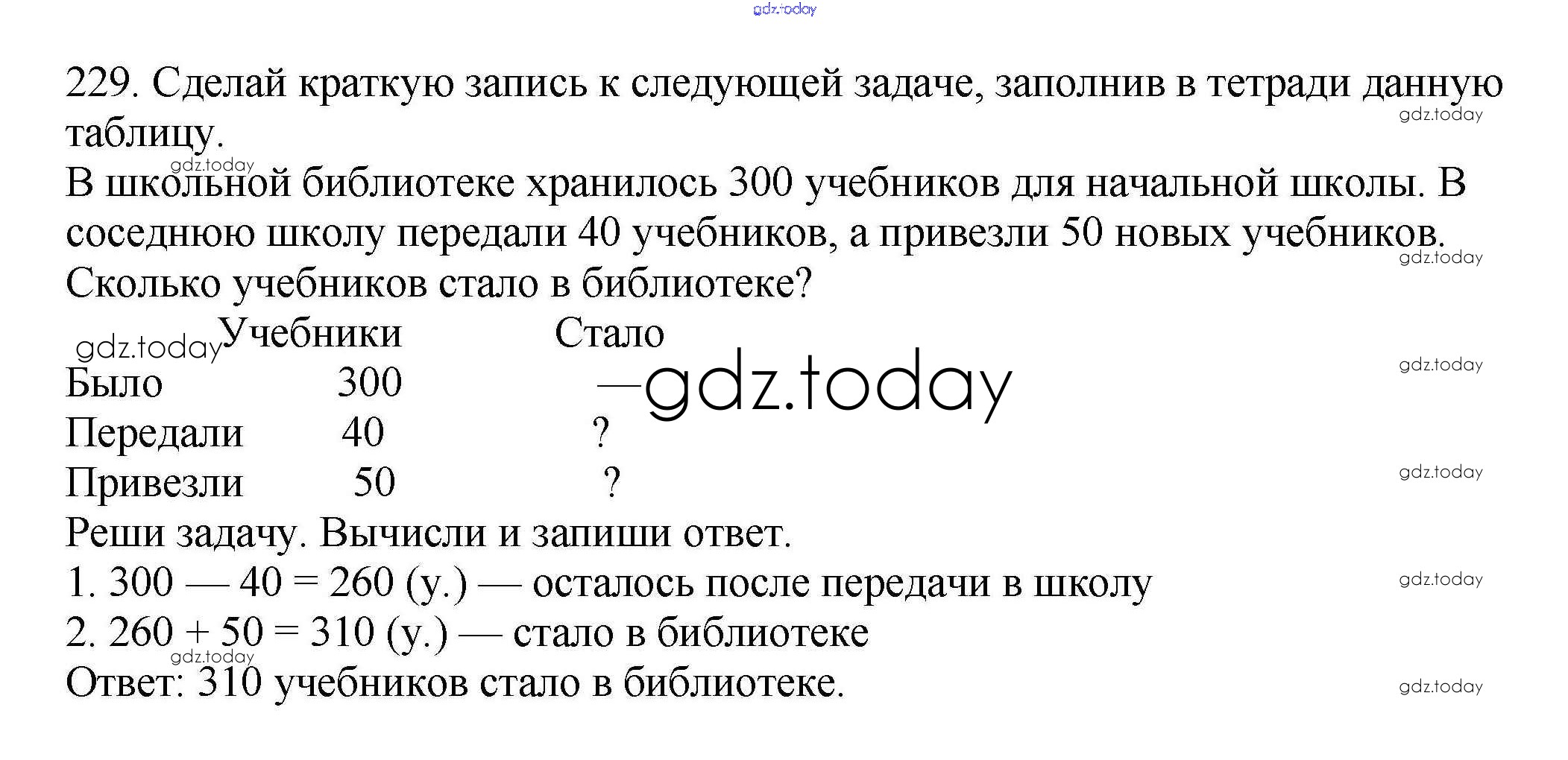 На страницах сайта gdz.today вы найдете учебный и вспомогательный материал, направленный на улучшения знаний школьной программы. ГДЗ - онлайн мир знаний Решение к части 1 (упражнения) 229 Учебнику по Математике для 3 класса Чекин Академкнига Перспективная начальная школа 2016