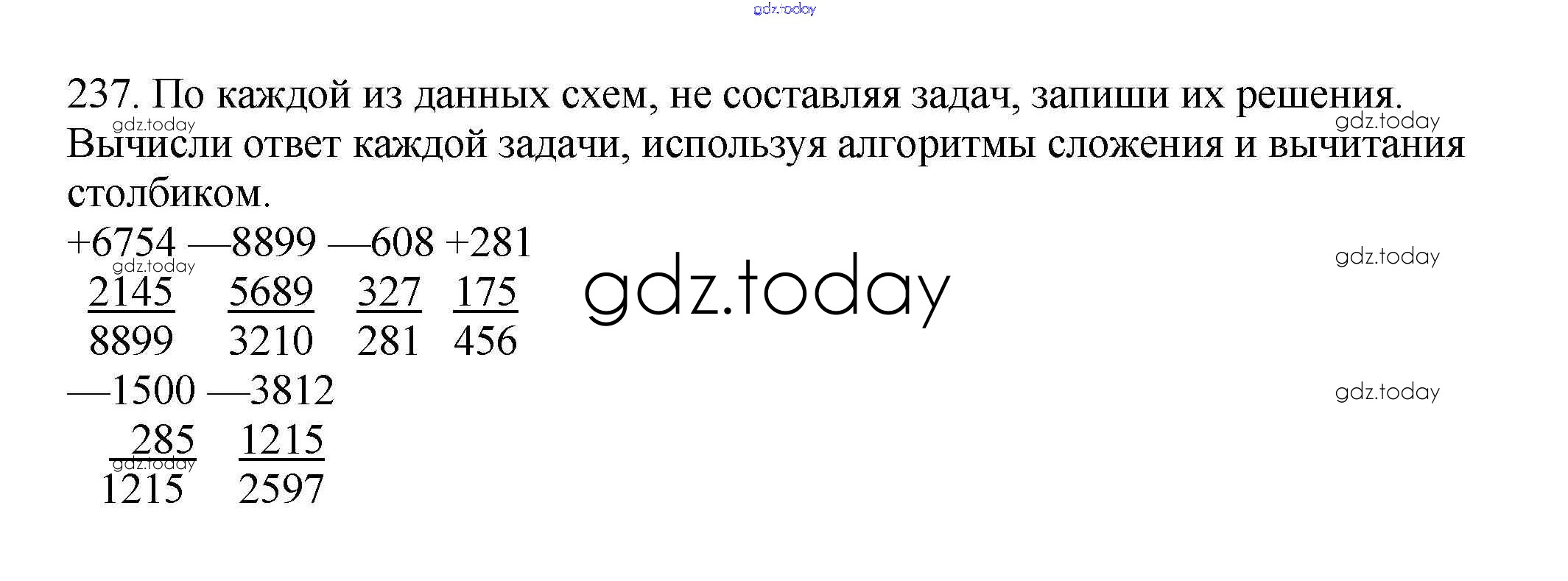 На страницах сайта gdz.today вы найдете учебный и вспомогательный материал, направленный на улучшения знаний школьной программы. ГДЗ - онлайн мир знаний Решение к части 1 (упражнения) 237 Учебнику по Математике для 3 класса Чекин Академкнига Перспективная начальная школа 2016