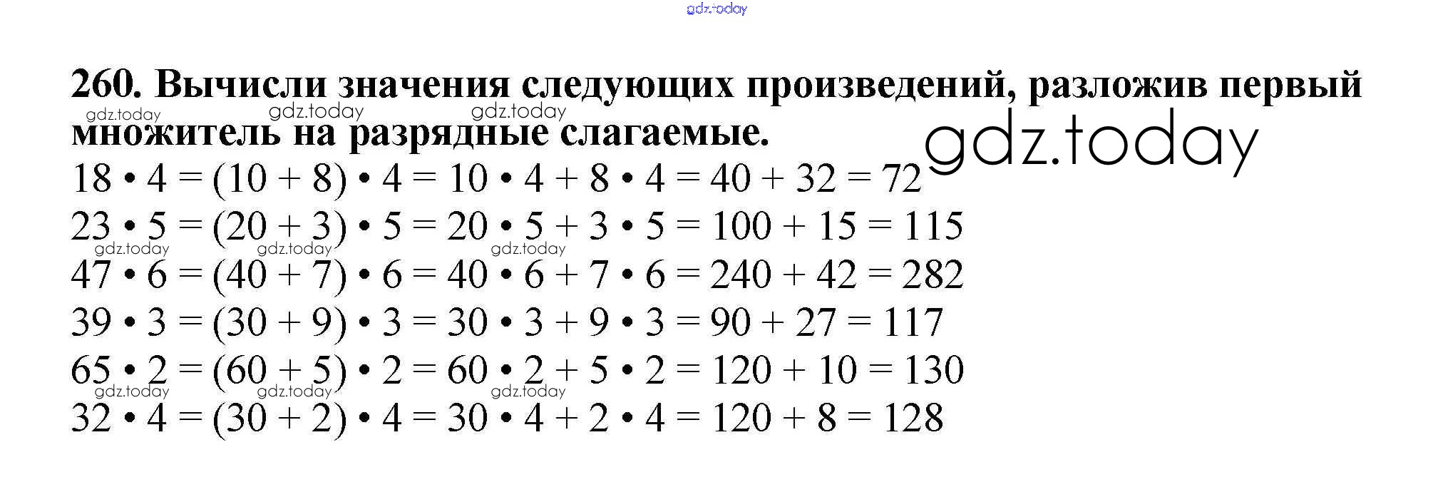 На страницах сайта gdz.today вы найдете учебный и вспомогательный материал, направленный на улучшения знаний школьной программы. ГДЗ - онлайн мир знаний Решение к части 1 (упражнения) 260 Учебнику по Математике для 3 класса Чекин Академкнига Перспективная начальная школа 2016