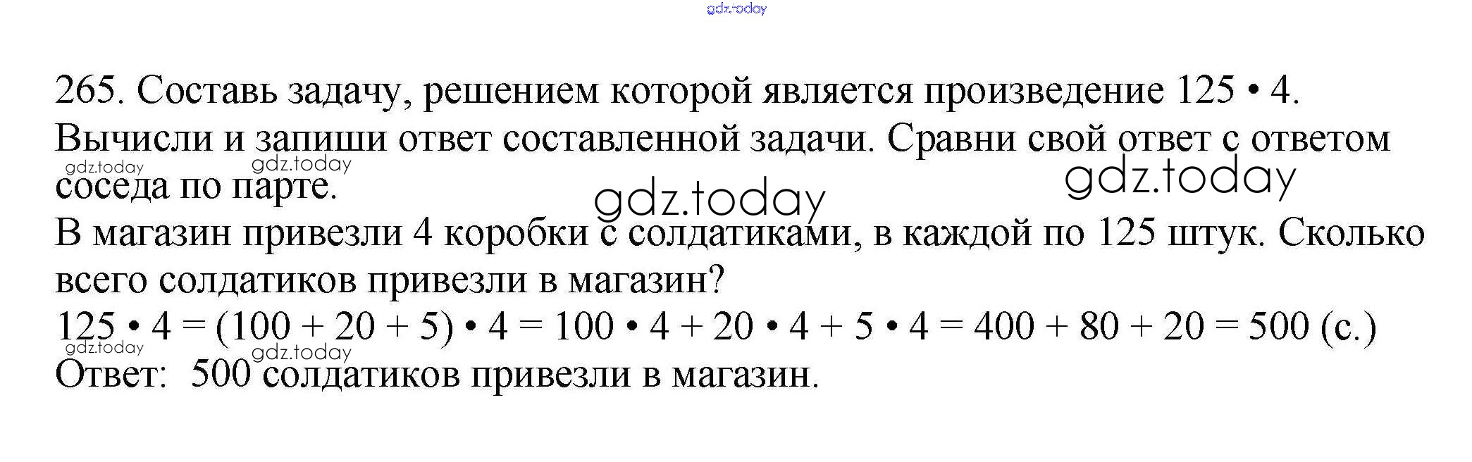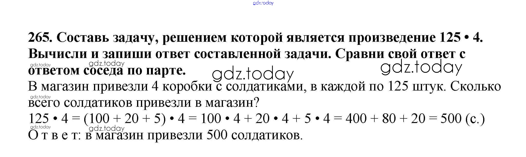 На страницах сайта gdz.today вы найдете учебный и вспомогательный материал, направленный на улучшения знаний школьной программы. ГДЗ - онлайн мир знаний Решение к части 1 (упражнения) 265 Учебнику по Математике для 3 класса Чекин Академкнига Перспективная начальная школа 2016