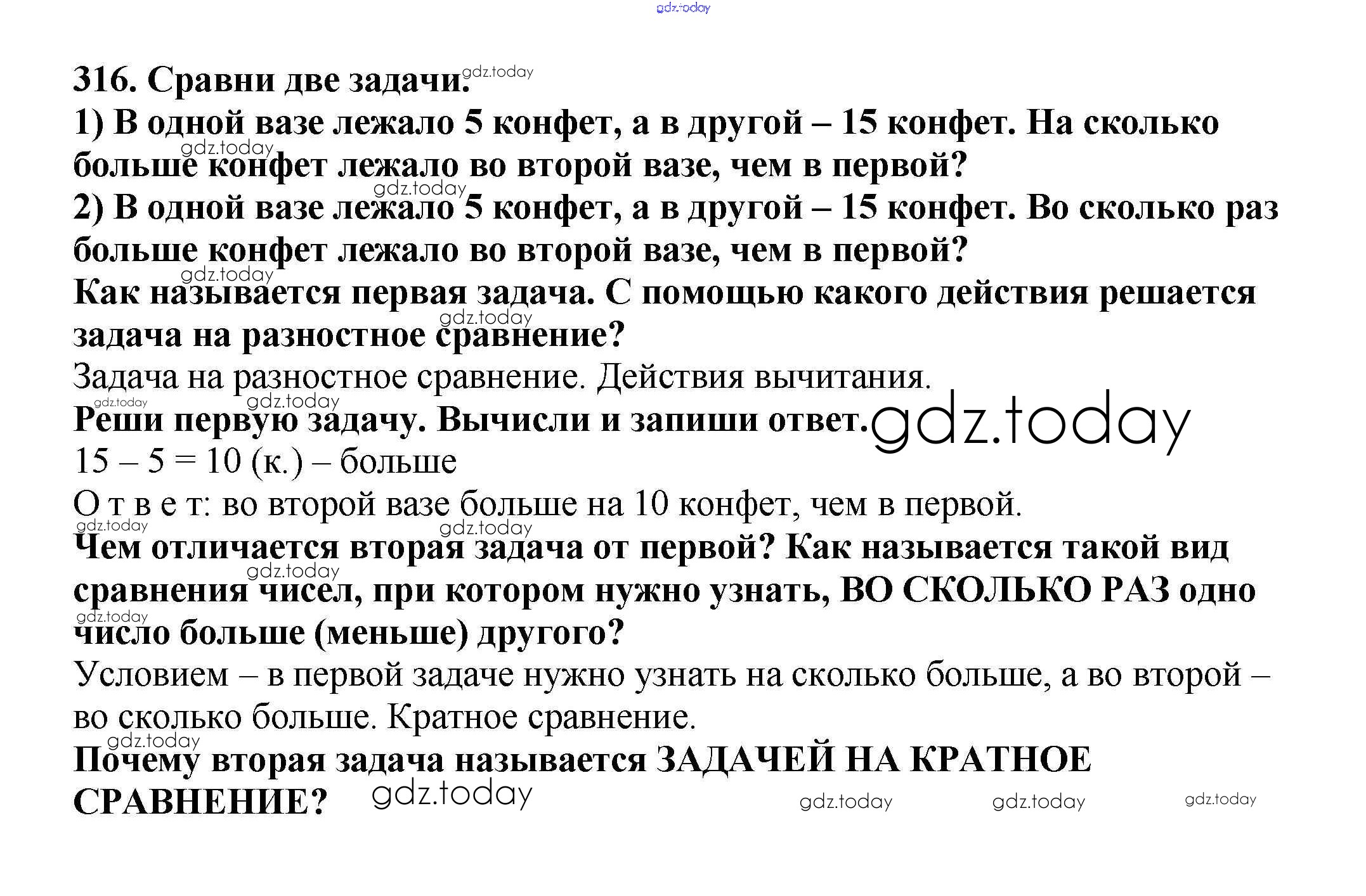 На страницах сайта gdz.today вы найдете учебный и вспомогательный материал, направленный на улучшения знаний школьной программы. ГДЗ - онлайн мир знаний Решение к части 1 (упражнения) 316 Учебнику по Математике для 3 класса Чекин Академкнига Перспективная начальная школа 2016
