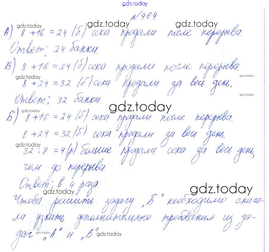 Ответы к Решение к части 1 (упражнения) 464 Учебнику по Математике для 3 класса Чекин Академкнига Перспективная начальная школа 2016