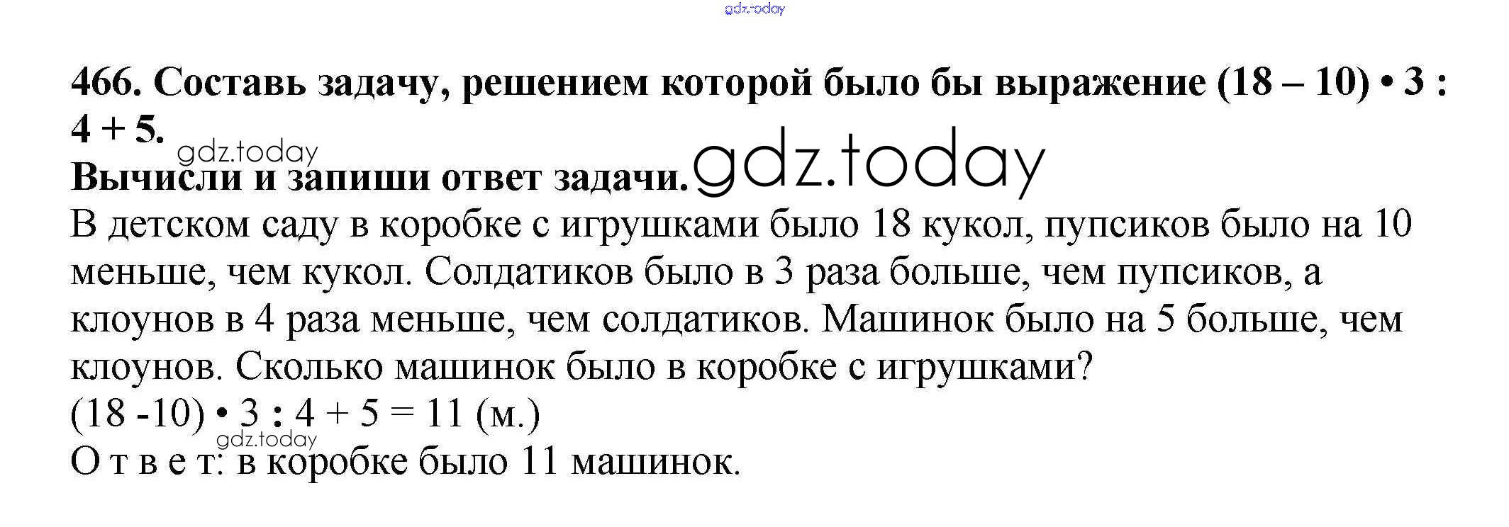На страницах сайта gdz.today вы найдете учебный и вспомогательный материал, направленный на улучшения знаний школьной программы. ГДЗ - онлайн мир знаний Решение к части 1 (упражнения) 466 Учебнику по Математике для 3 класса Чекин Академкнига Перспективная начальная школа 2016