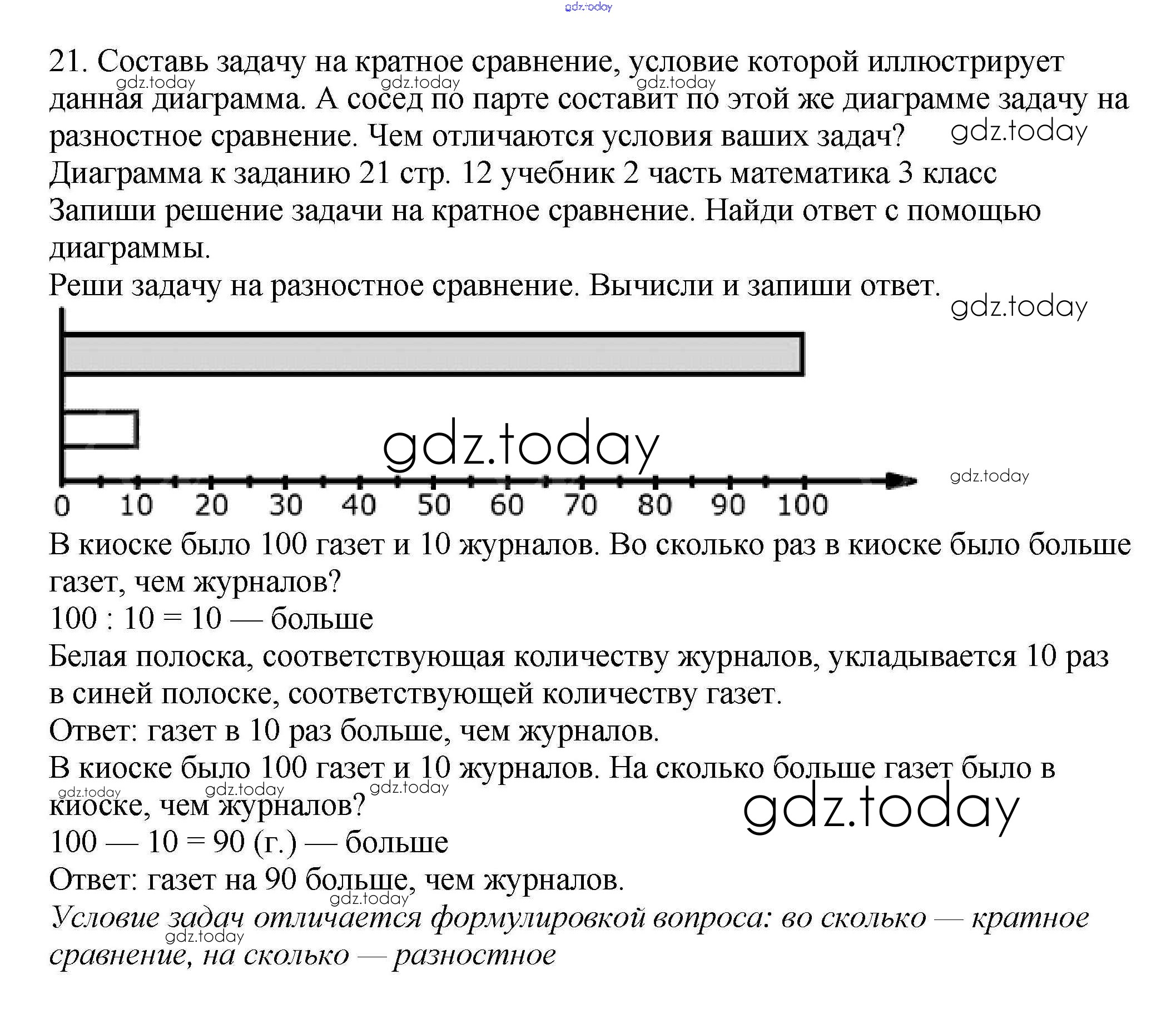 На страницах сайта gdz.today вы найдете учебный и вспомогательный материал, направленный на улучшения знаний школьной программы. ГДЗ - онлайн мир знаний Решение к части 2 (упражнения) 21 Учебнику по Математике для 3 класса Чекин Академкнига Перспективная начальная школа 2016