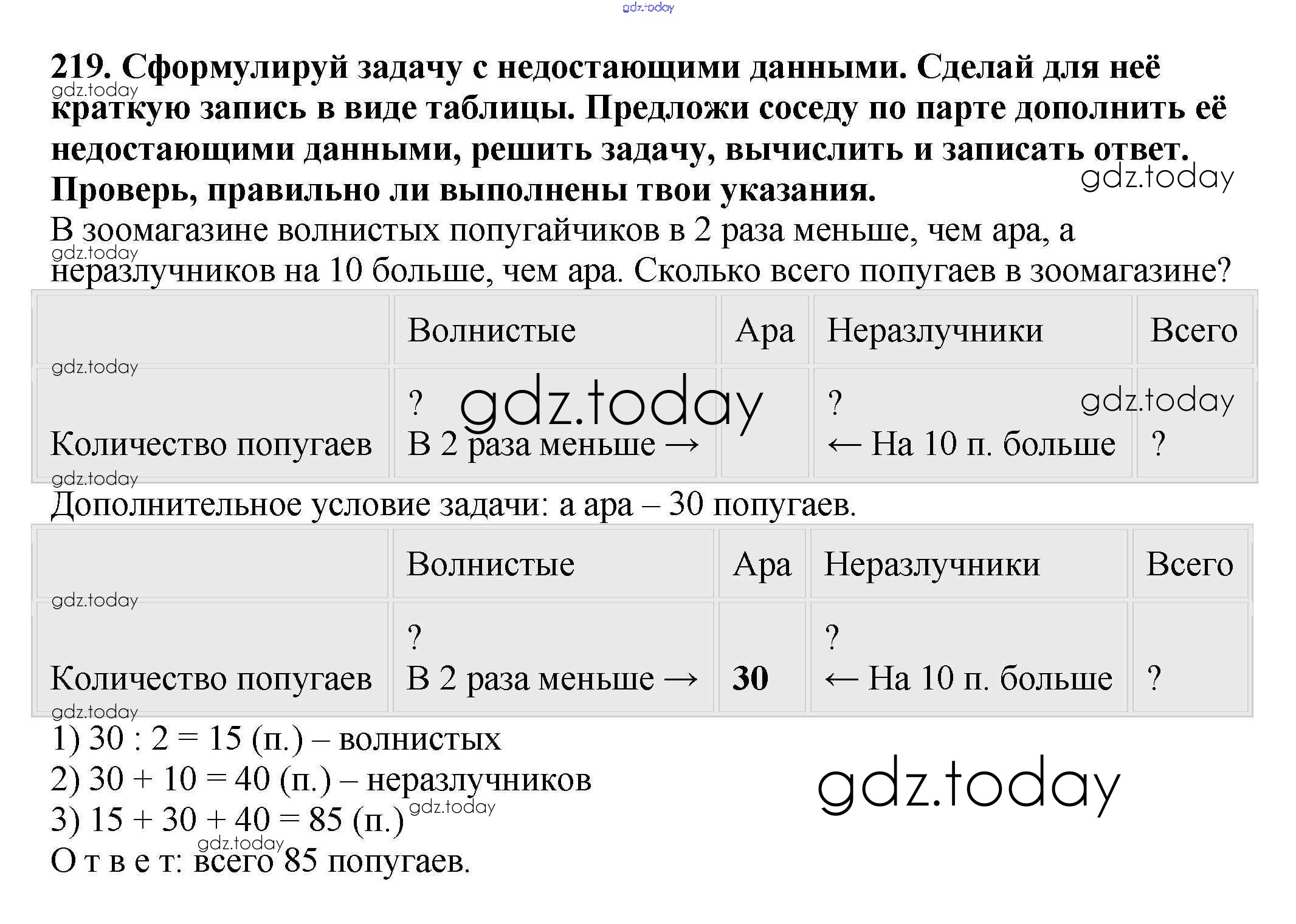 На страницах сайта gdz.today вы найдете учебный и вспомогательный материал, направленный на улучшения знаний школьной программы. ГДЗ - онлайн мир знаний Решение к части 2 (упражнения) 219 Учебнику по Математике для 3 класса Чекин Академкнига Перспективная начальная школа 2016