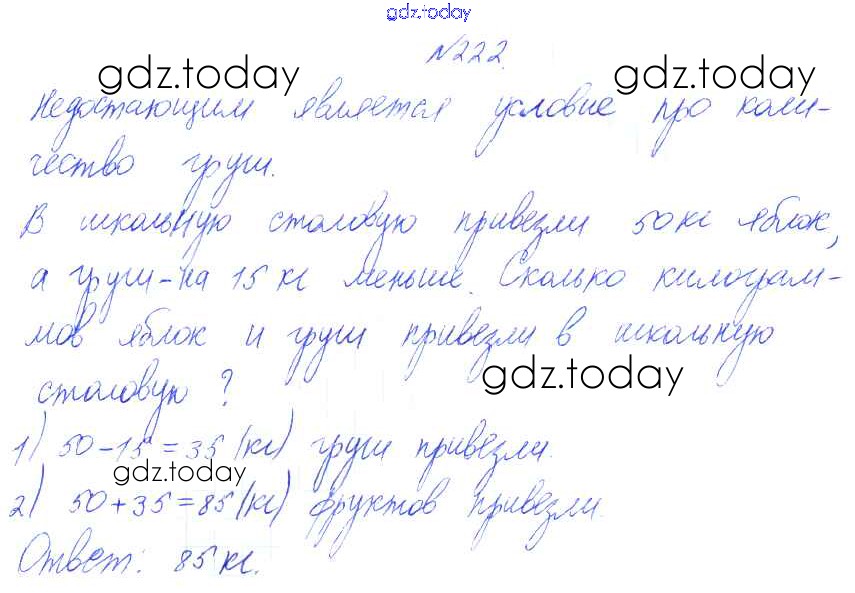На страницах сайта gdz.today вы найдете учебный и вспомогательный материал, направленный на улучшения знаний школьной программы. ГДЗ - онлайн мир знаний Решение к части 2 (упражнения) 222 Учебнику по Математике для 3 класса Чекин Академкнига Перспективная начальная школа 2016