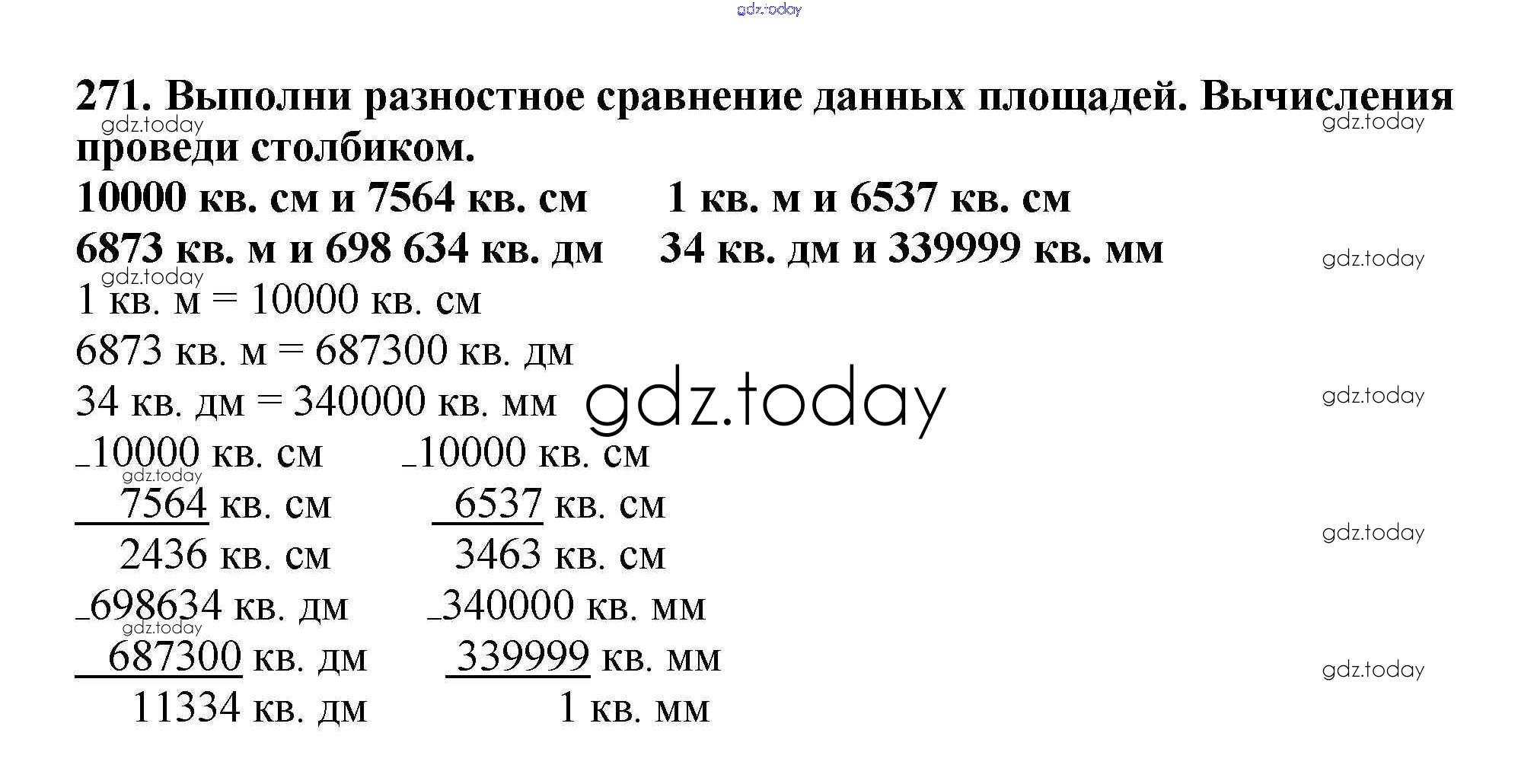 На страницах сайта gdz.today вы найдете учебный и вспомогательный материал, направленный на улучшения знаний школьной программы. ГДЗ - онлайн мир знаний Решение к части 2 (упражнения) 271 Учебнику по Математике для 3 класса Чекин Академкнига Перспективная начальная школа 2016
