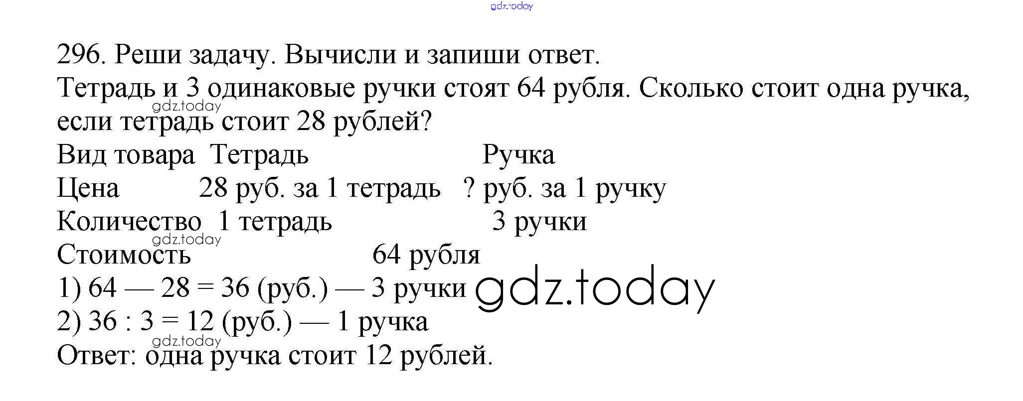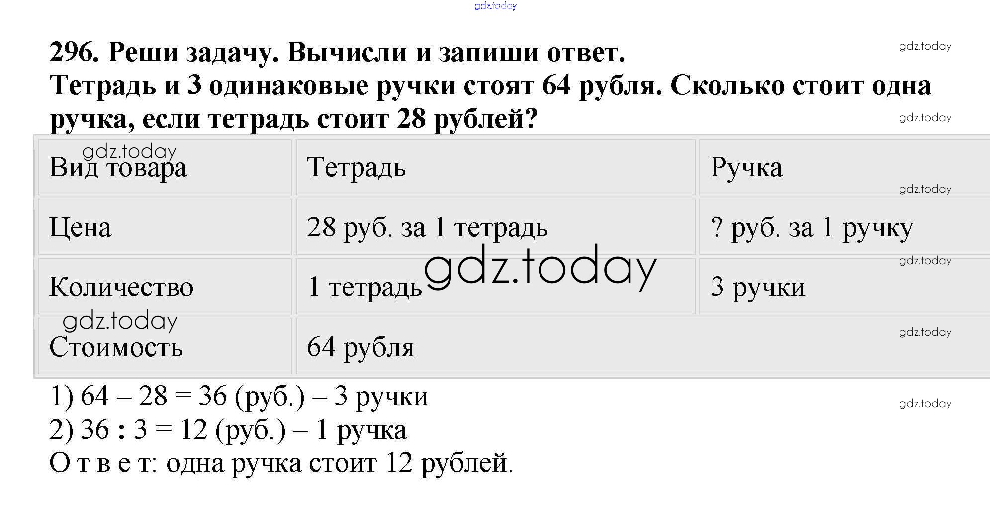 На страницах сайта gdz.today вы найдете учебный и вспомогательный материал, направленный на улучшения знаний школьной программы. ГДЗ - онлайн мир знаний Решение к части 2 (упражнения) 296 Учебнику по Математике для 3 класса Чекин Академкнига Перспективная начальная школа 2016