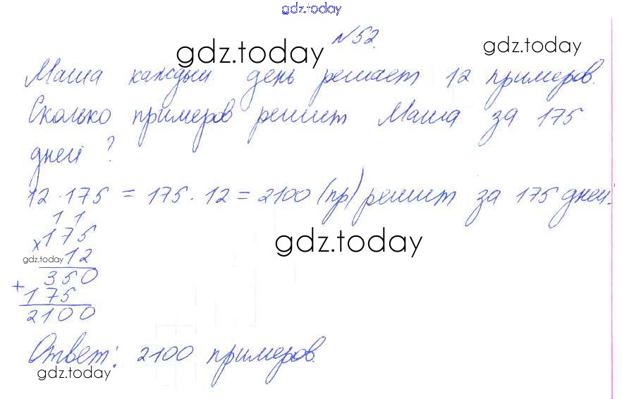 Ответы к Решение к части 2 (упражнения) 52 Учебнику по Математике для 3 класса Чекин Академкнига Перспективная начальная школа 2016