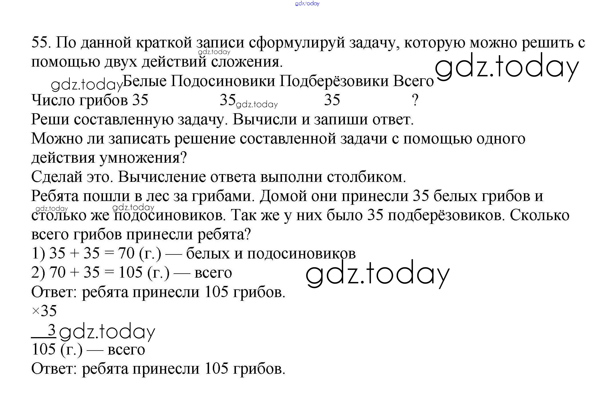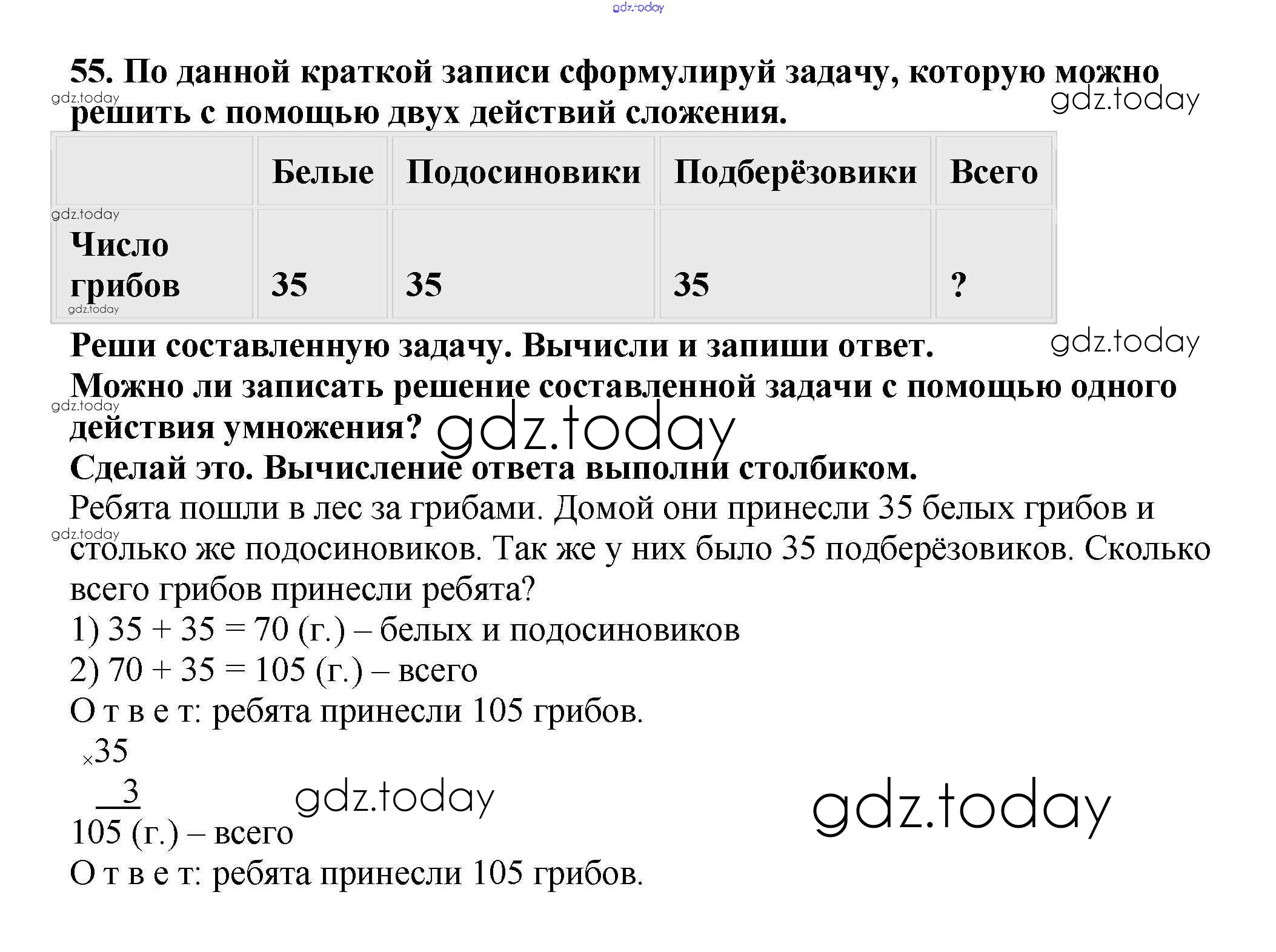 На страницах сайта gdz.today вы найдете учебный и вспомогательный материал, направленный на улучшения знаний школьной программы. ГДЗ - онлайн мир знаний Решение к части 2 (упражнения) 55 Учебнику по Математике для 3 класса Чекин Академкнига Перспективная начальная школа 2016