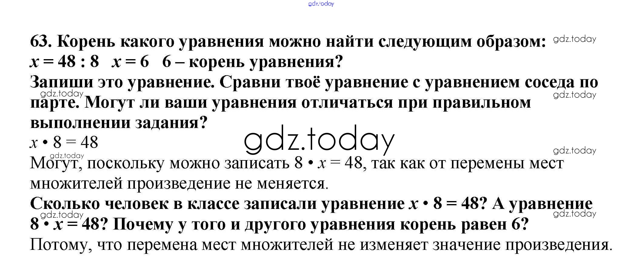 На страницах сайта gdz.today вы найдете учебный и вспомогательный материал, направленный на улучшения знаний школьной программы. ГДЗ - онлайн мир знаний Решение к части 2 (упражнения) 63 Учебнику по Математике для 3 класса Чекин Академкнига Перспективная начальная школа 2016
