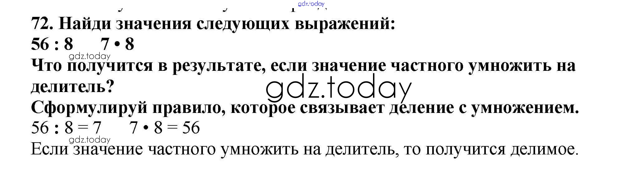 На страницах сайта gdz.today вы найдете учебный и вспомогательный материал, направленный на улучшения знаний школьной программы. ГДЗ - онлайн мир знаний Решение к части 2 (упражнения) 72 Учебнику по Математике для 3 класса Чекин Академкнига Перспективная начальная школа 2016