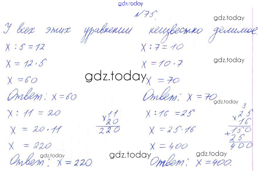 Ответы к Решение к части 2 (упражнения) 75 Учебнику по Математике для 3 класса Чекин Академкнига Перспективная начальная школа 2016