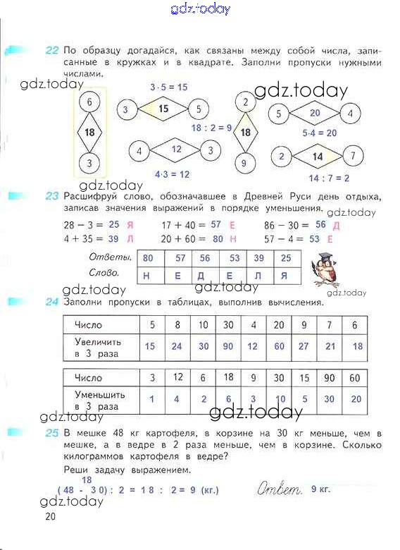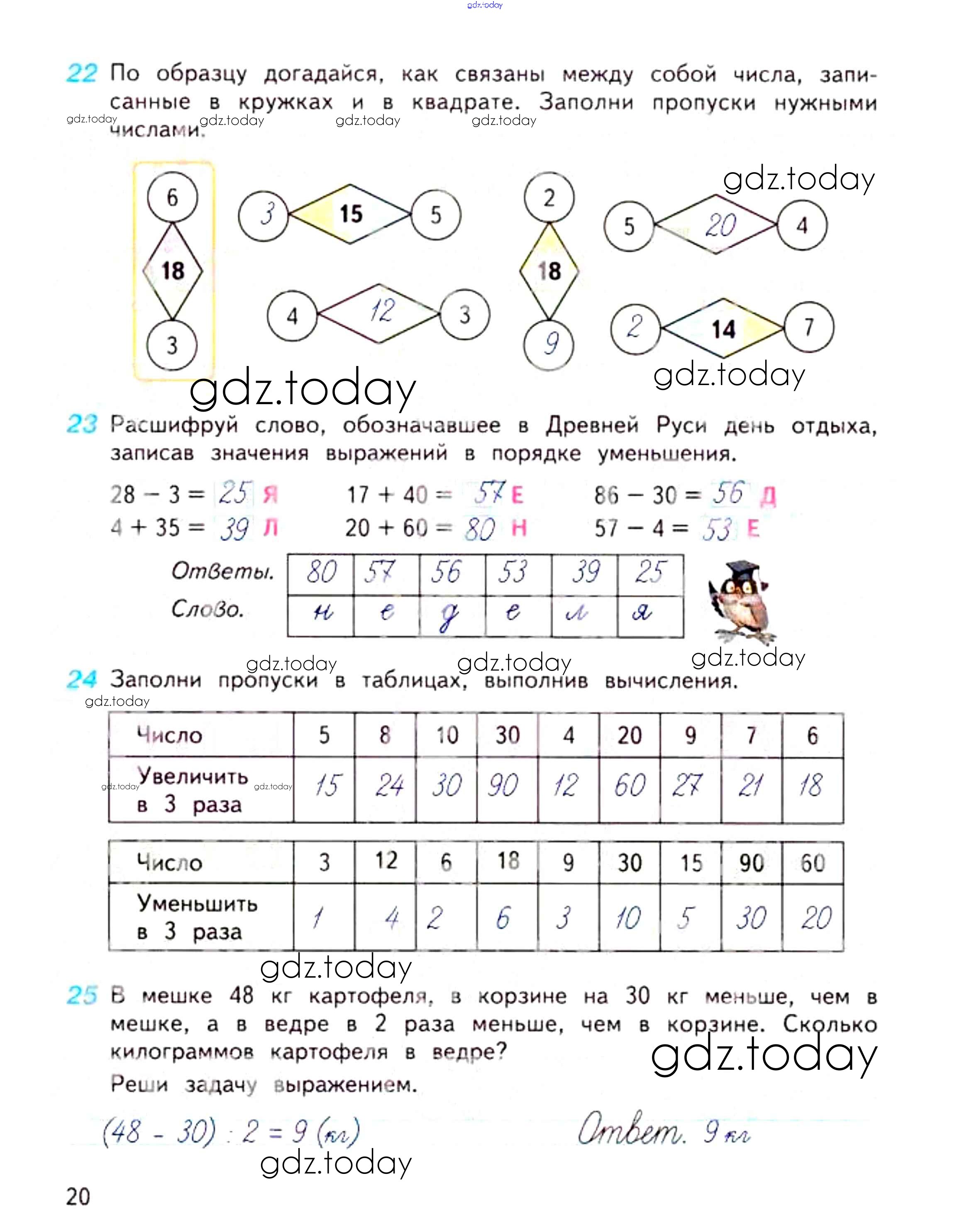 Ответы к Решение к части 1. Страницы 20 Рабочей тетради по Математике для 3 класса Дорофеев, Миракова Просвещение Перспектива 2017