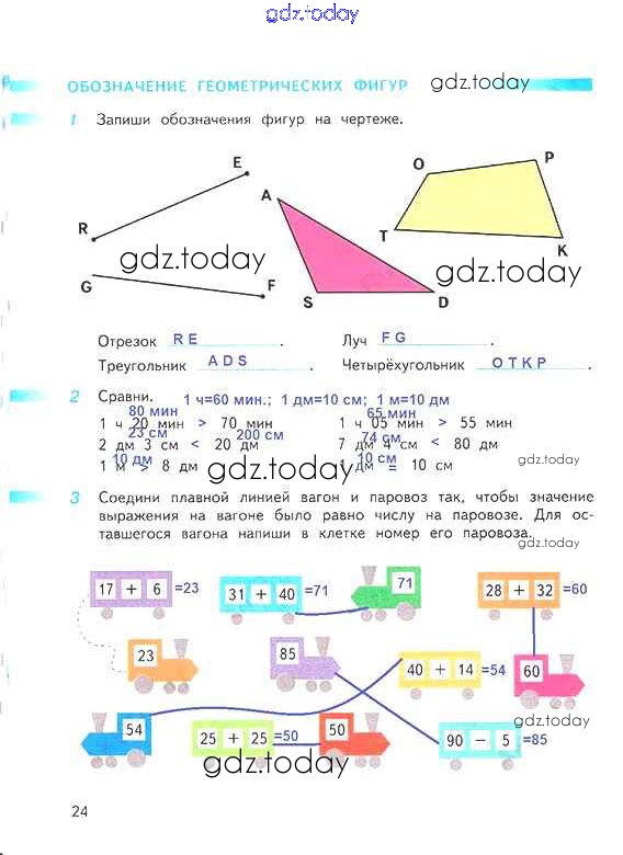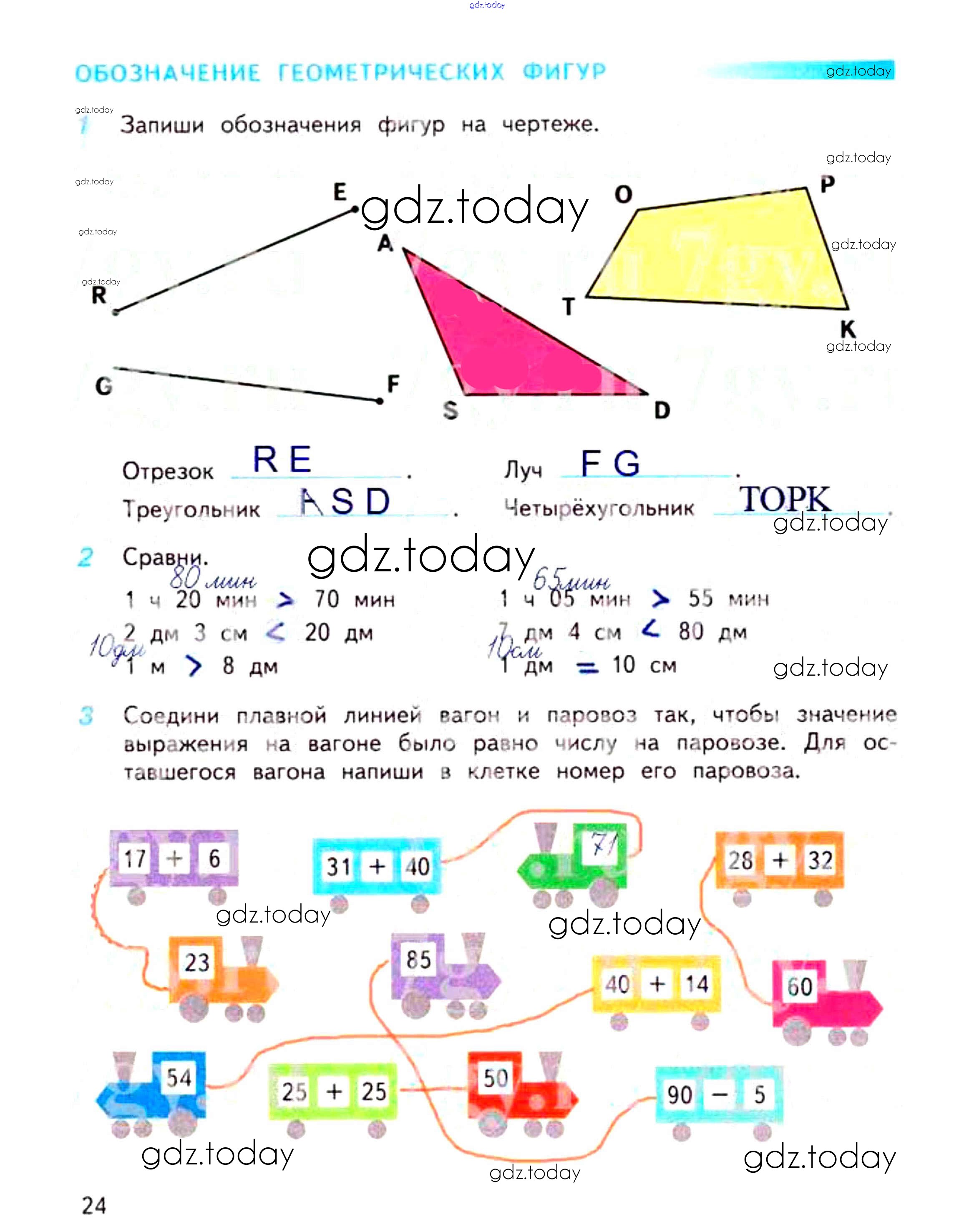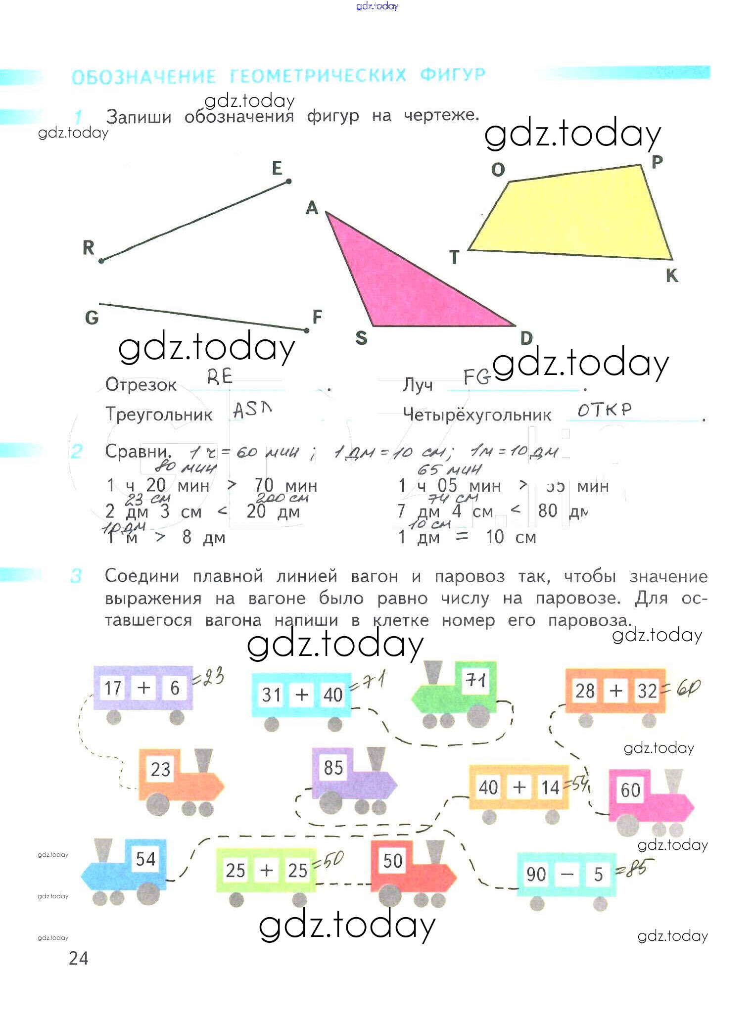 На страницах сайта gdz.today вы найдете учебный и вспомогательный материал, направленный на улучшения знаний школьной программы. ГДЗ - онлайн мир знаний Решение к части 1. Страницы 24 Рабочей тетради по Математике для 3 класса Дорофеев, Миракова Просвещение Перспектива 2017