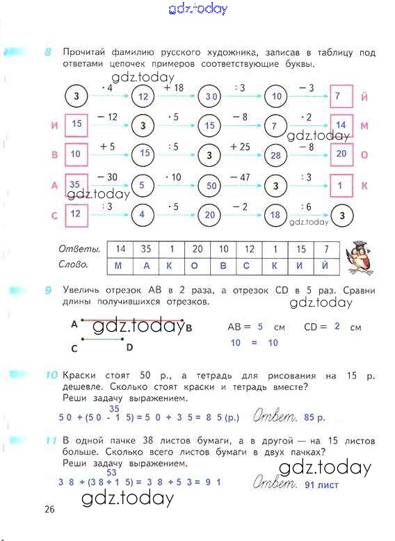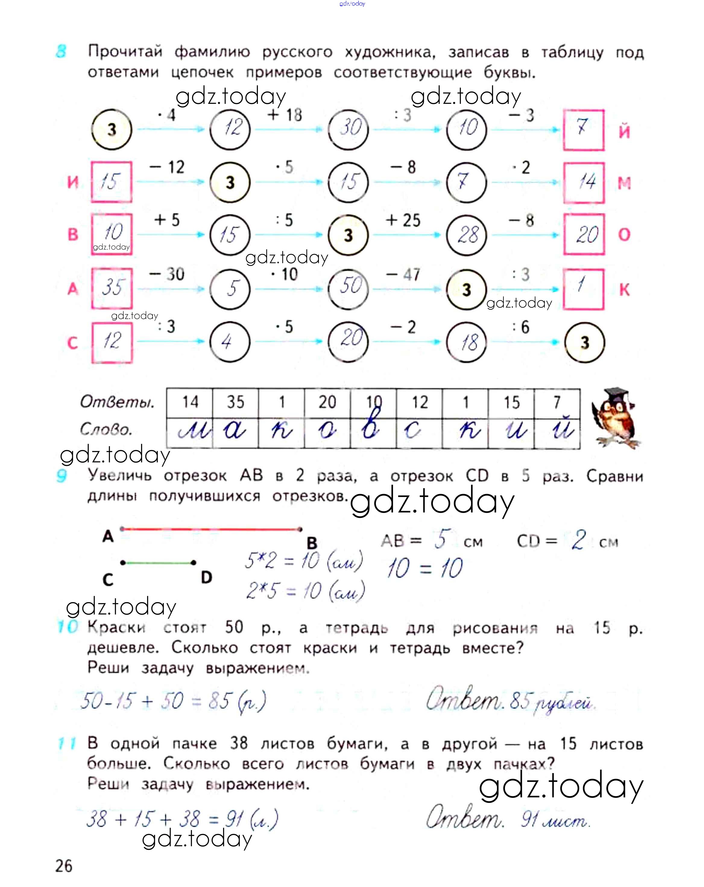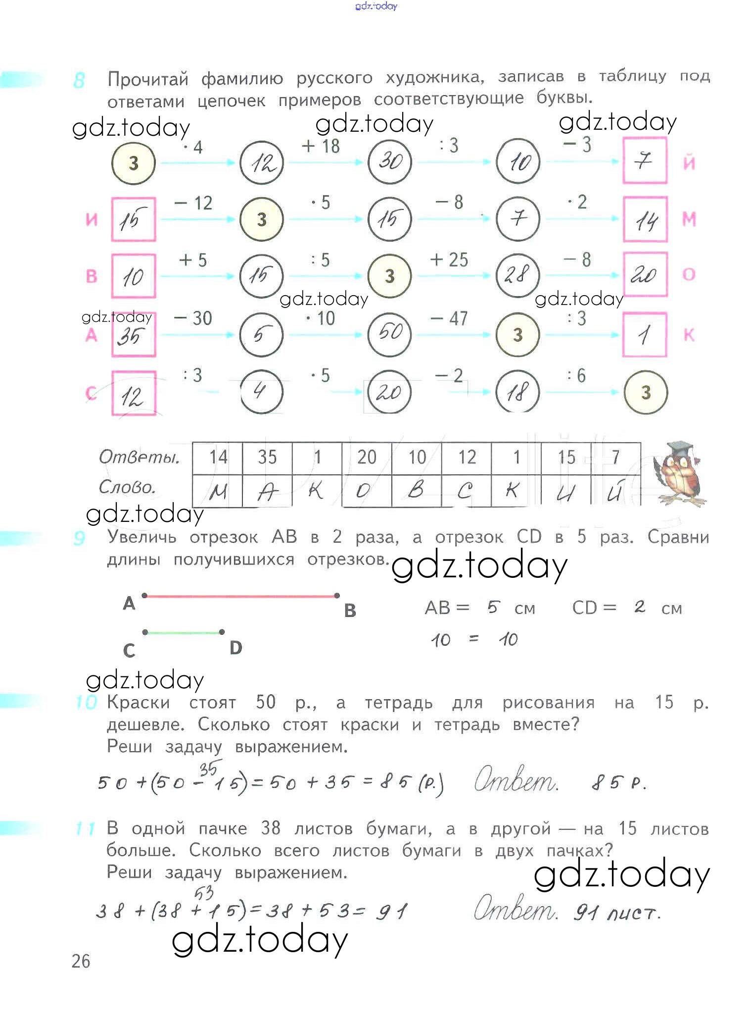 Ответы к Решение к части 1. Страницы 26 Рабочей тетради по Математике для 3 класса Дорофеев, Миракова Просвещение Перспектива 2017