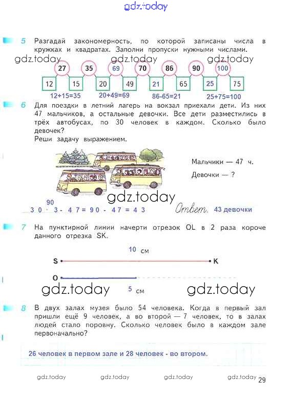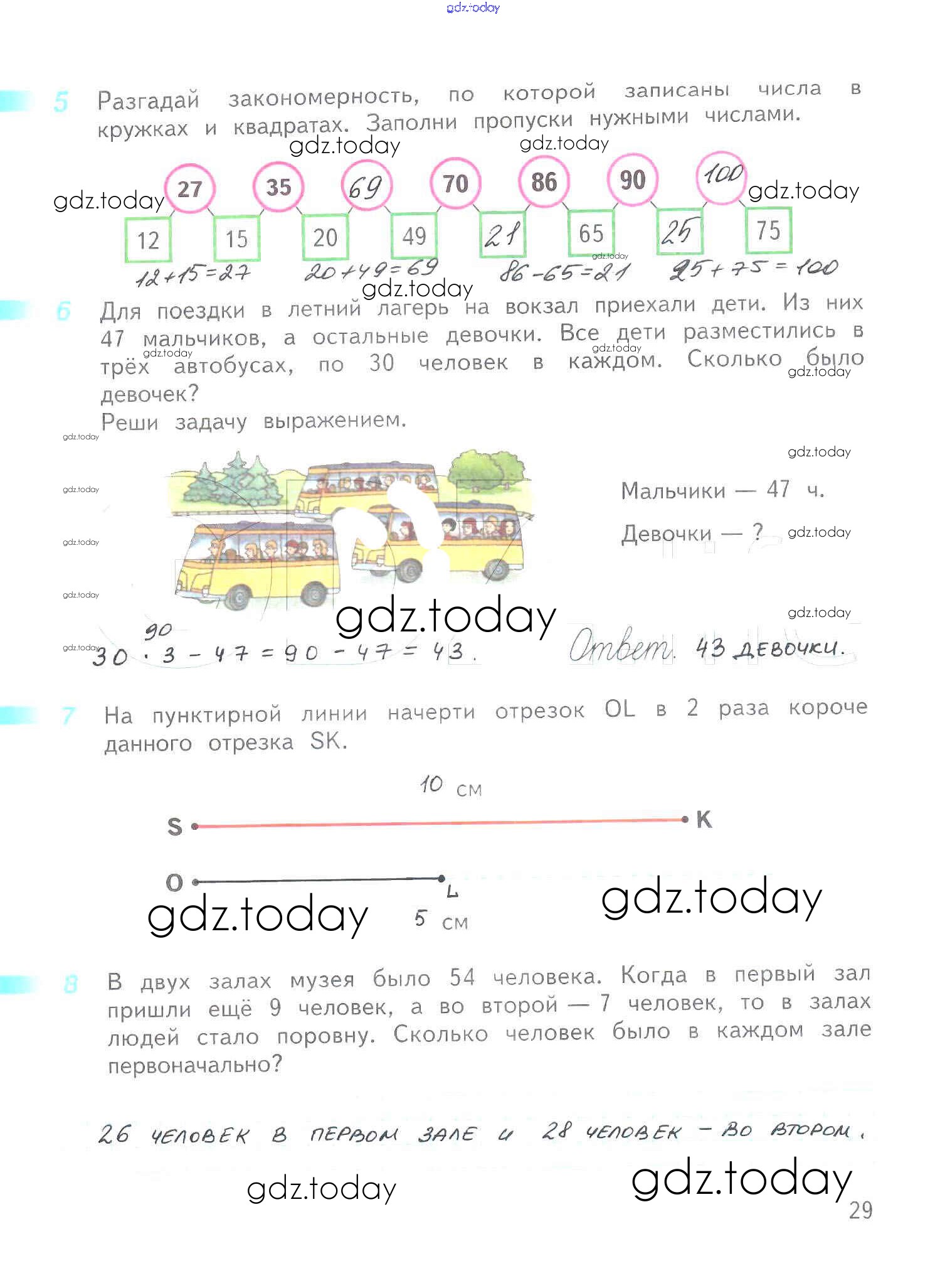Ответы к Решение к части 1. Страницы 29 Рабочей тетради по Математике для 3 класса Дорофеев, Миракова Просвещение Перспектива 2017