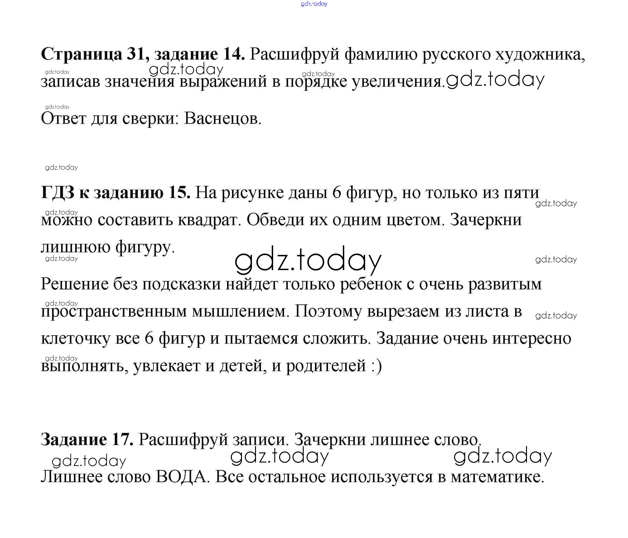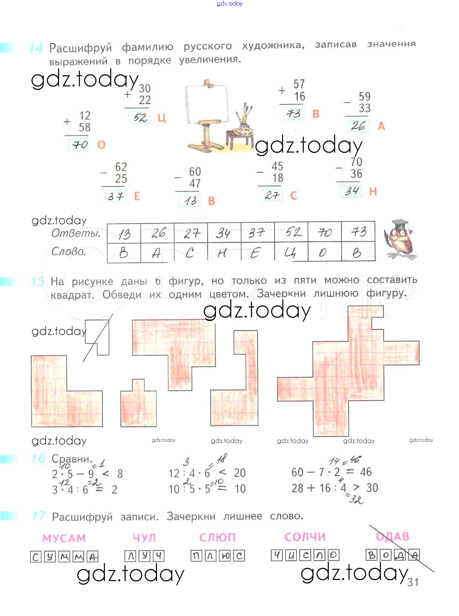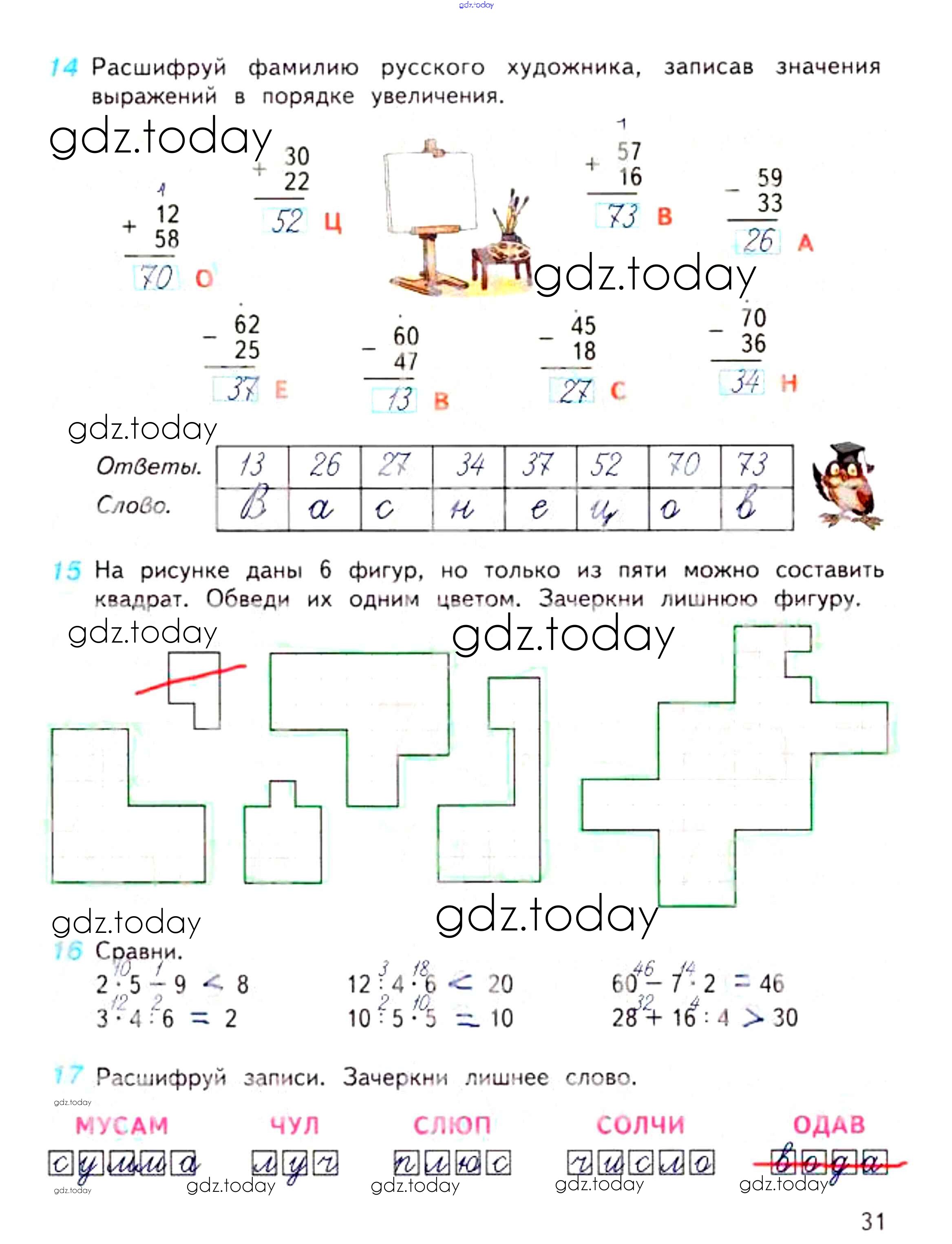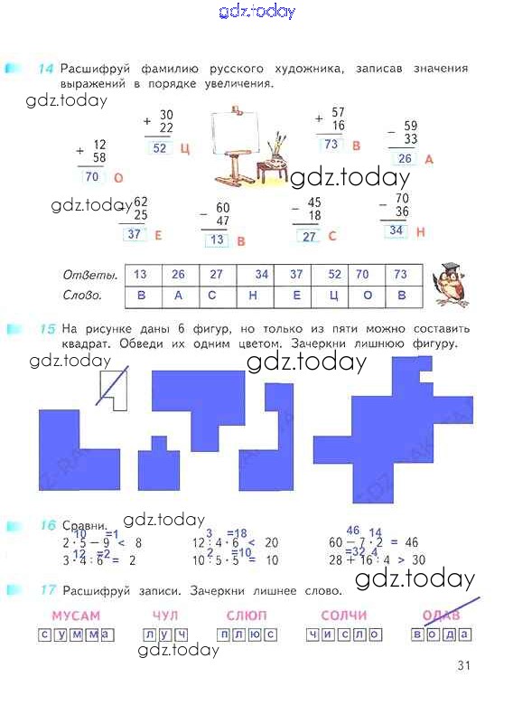 На страницах сайта gdz.today вы найдете учебный и вспомогательный материал, направленный на улучшения знаний школьной программы. ГДЗ - онлайн мир знаний Решение к части 1. Страницы 31 Рабочей тетради по Математике для 3 класса Дорофеев, Миракова Просвещение Перспектива 2017