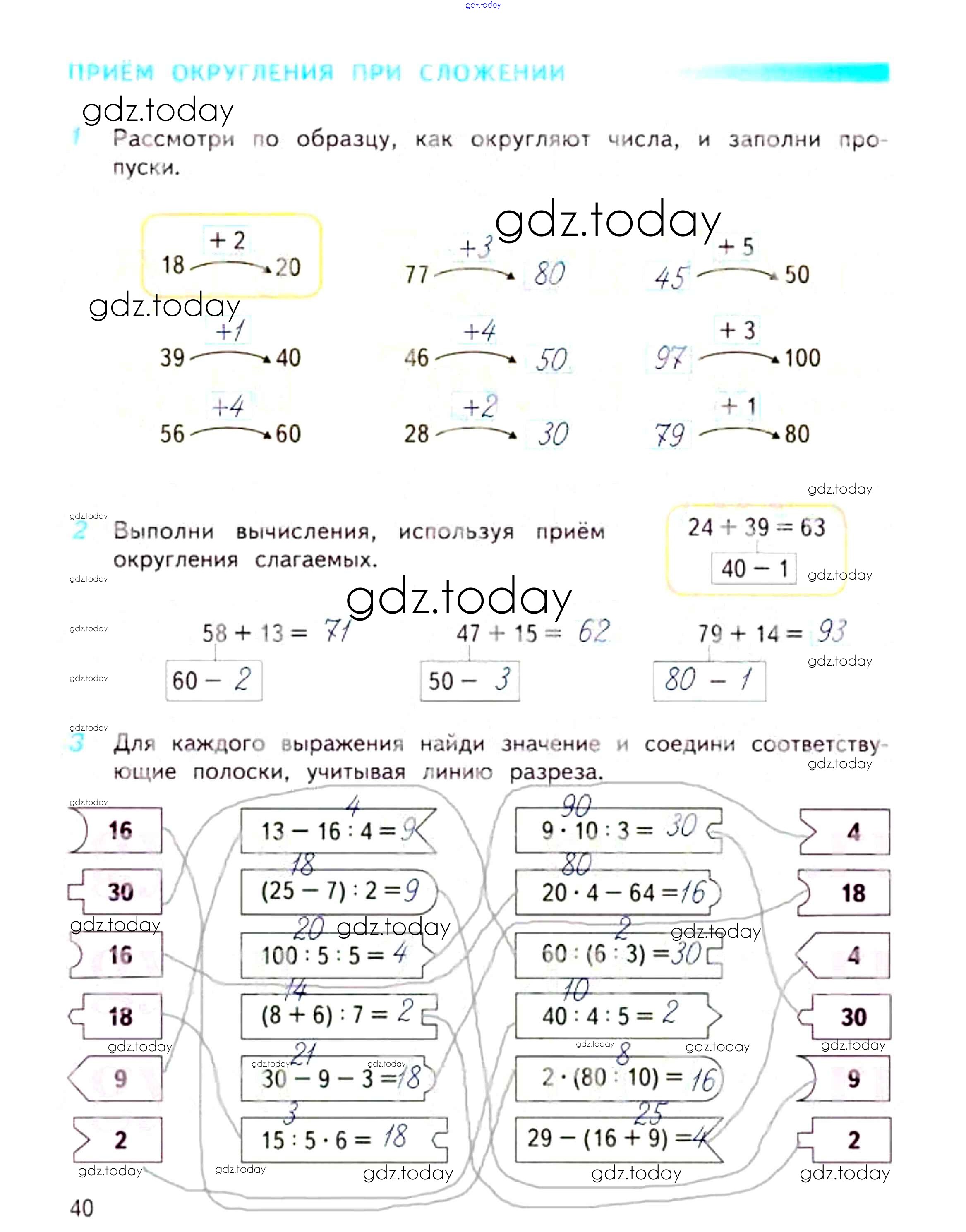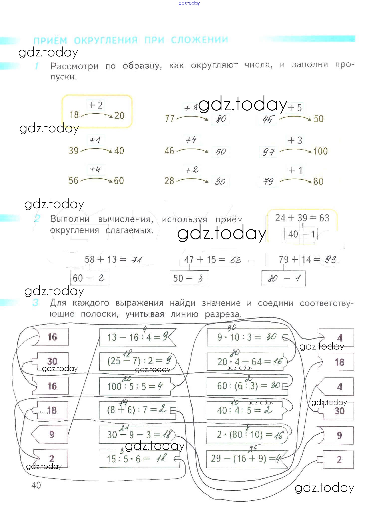 На страницах сайта gdz.today вы найдете учебный и вспомогательный материал, направленный на улучшения знаний школьной программы. ГДЗ - онлайн мир знаний Решение к части 1. Страницы 40 Рабочей тетради по Математике для 3 класса Дорофеев, Миракова Просвещение Перспектива 2017