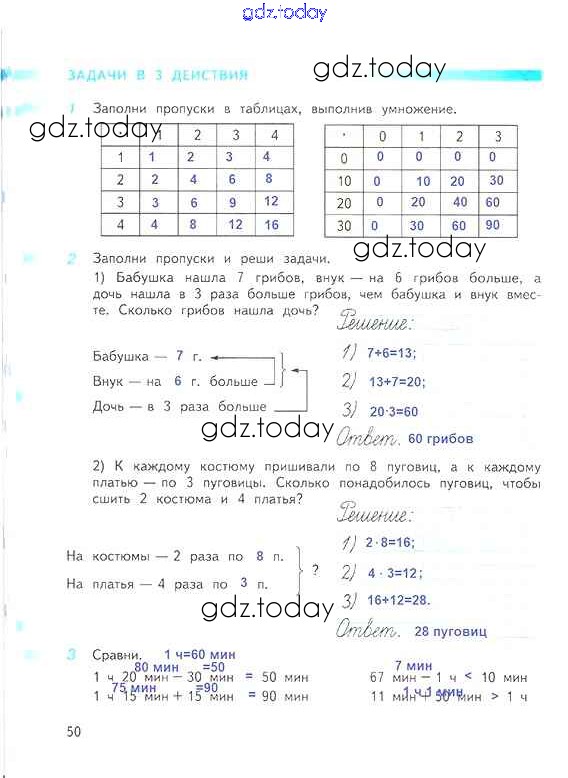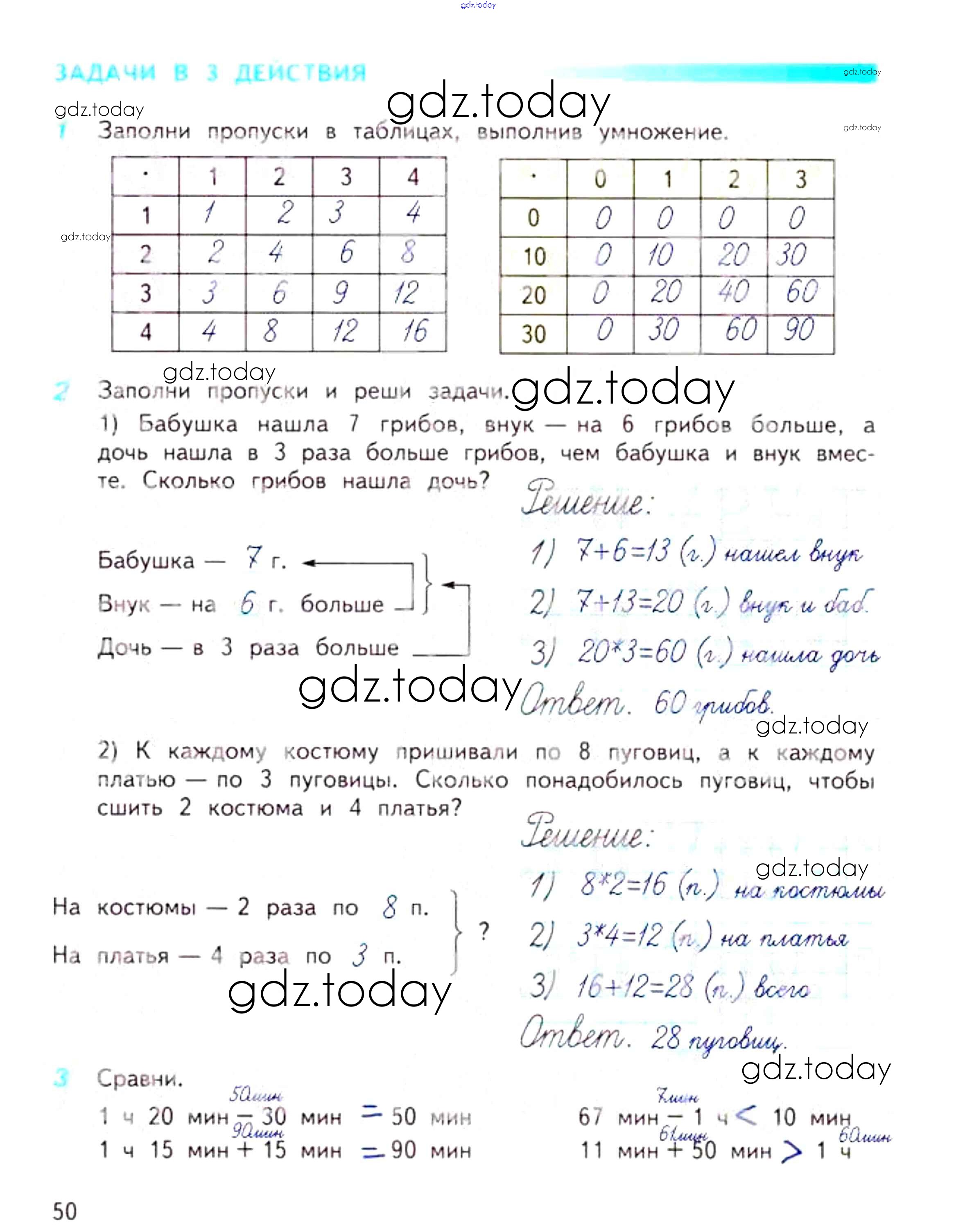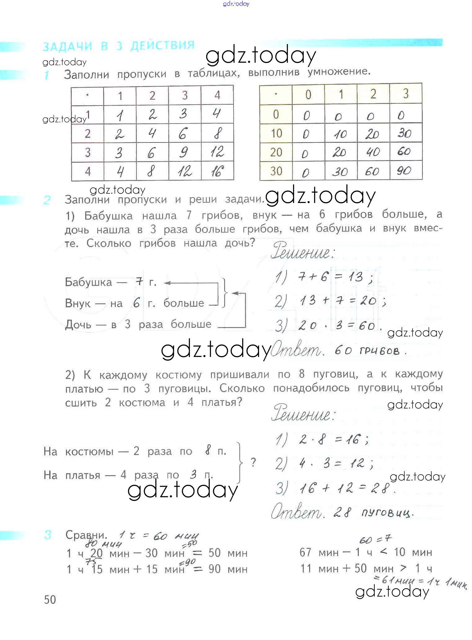 На страницах сайта gdz.today вы найдете учебный и вспомогательный материал, направленный на улучшения знаний школьной программы. ГДЗ - онлайн мир знаний Решение к части 1. Страницы 50 Рабочей тетради по Математике для 3 класса Дорофеев, Миракова Просвещение Перспектива 2017