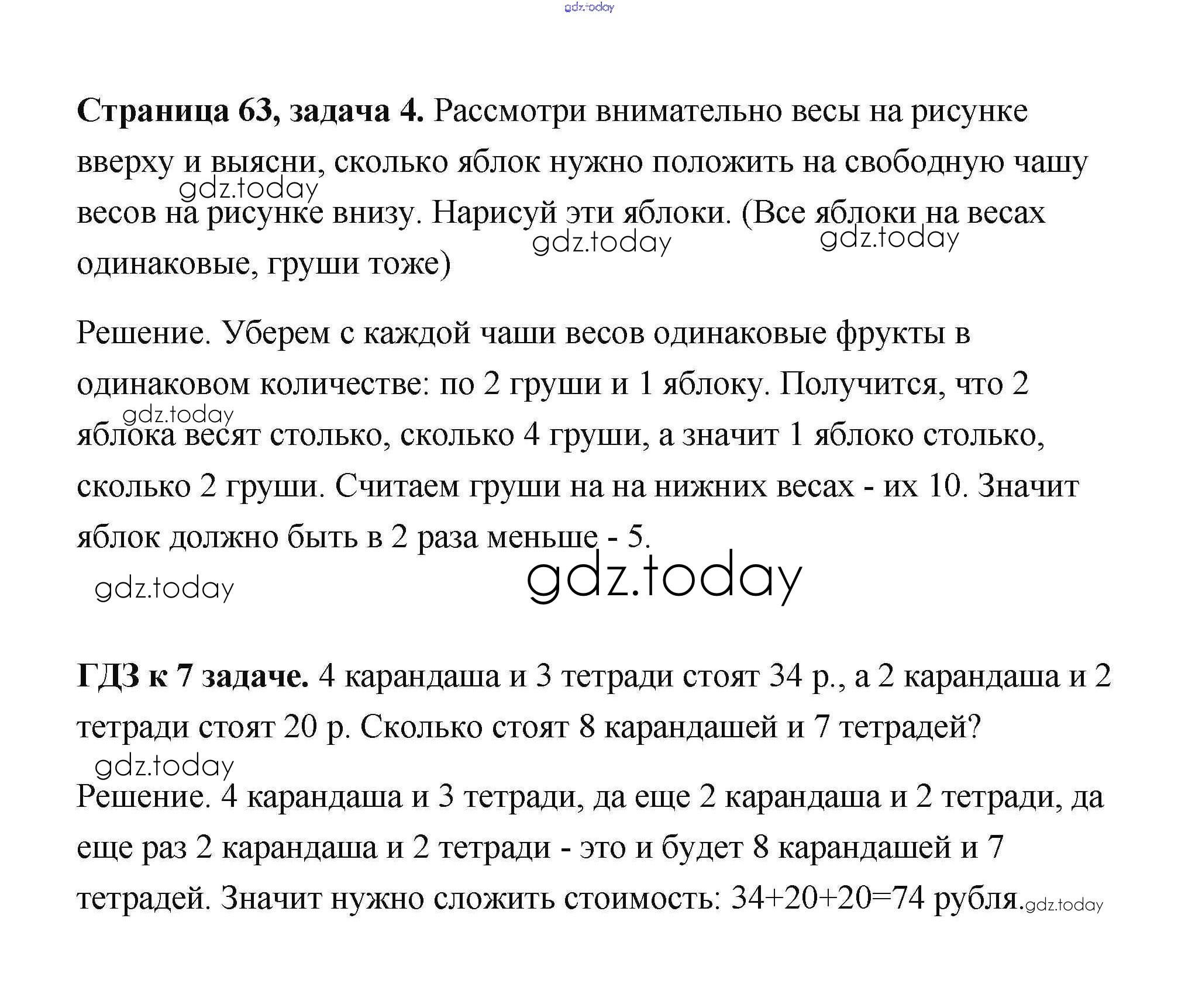 Ответы к Решение к части 1. Страницы 63 Рабочей тетради по Математике для 3 класса Дорофеев, Миракова Просвещение Перспектива 2017