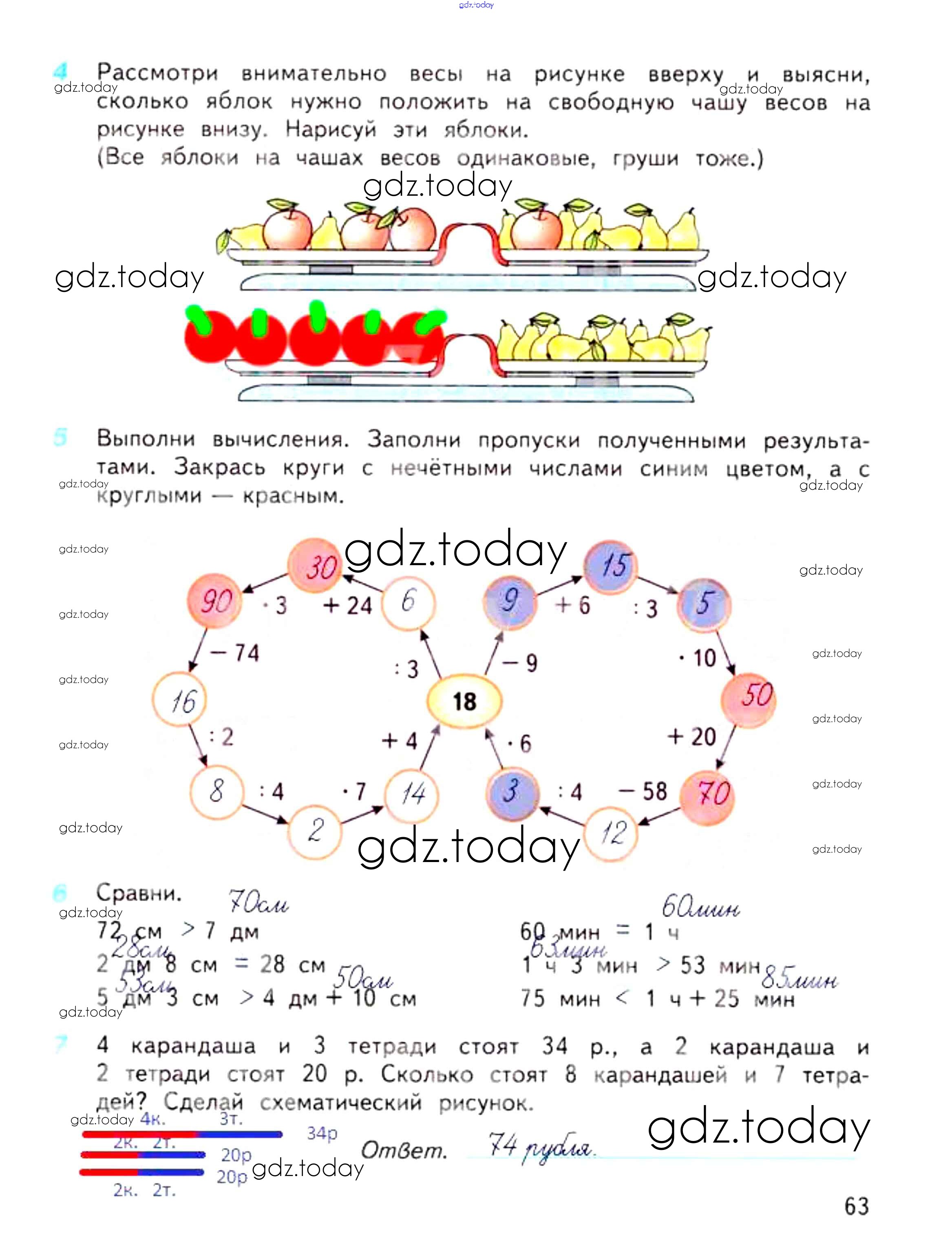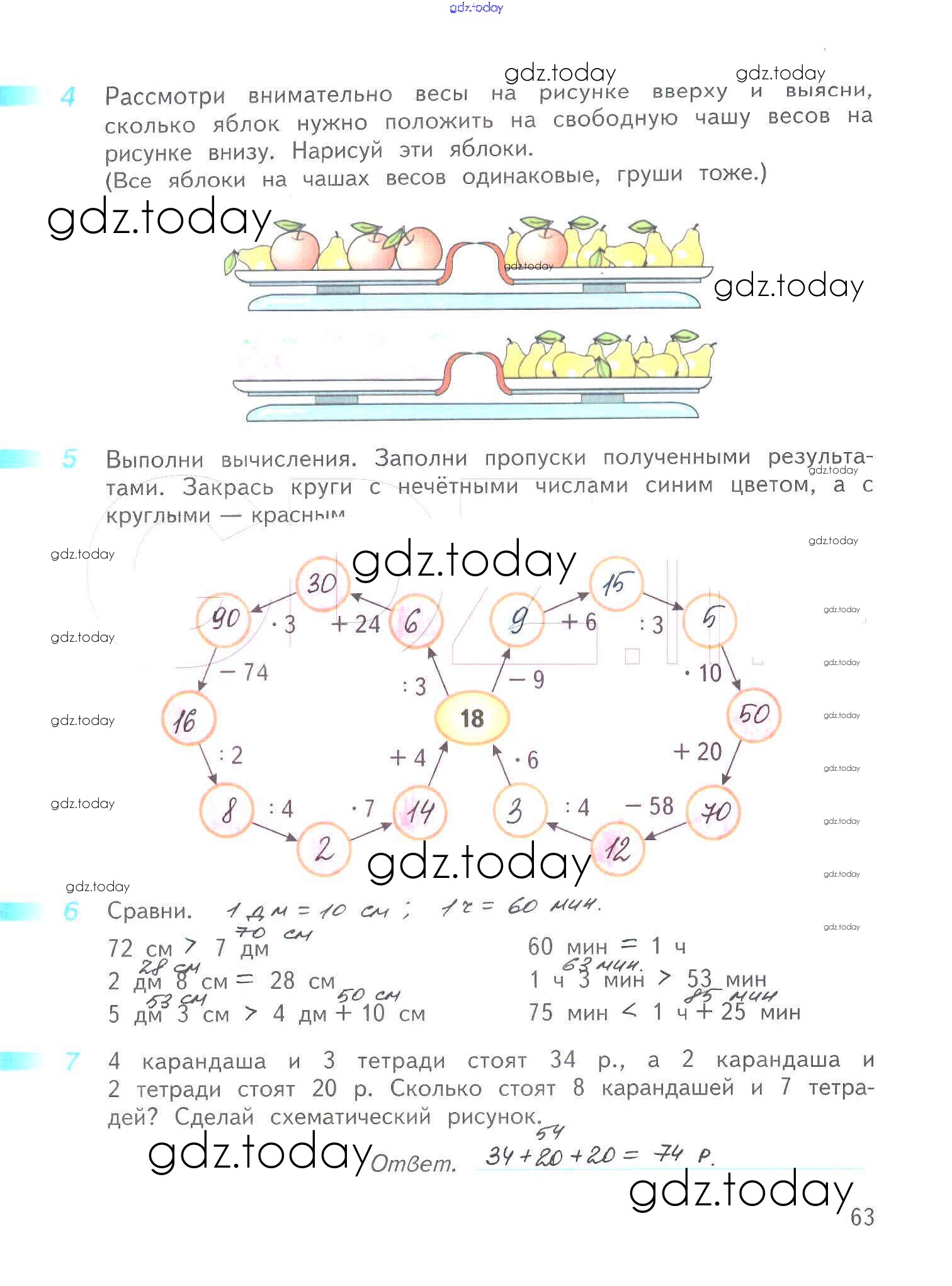 На страницах сайта gdz.today вы найдете учебный и вспомогательный материал, направленный на улучшения знаний школьной программы. ГДЗ - онлайн мир знаний Решение к части 1. Страницы 63 Рабочей тетради по Математике для 3 класса Дорофеев, Миракова Просвещение Перспектива 2017