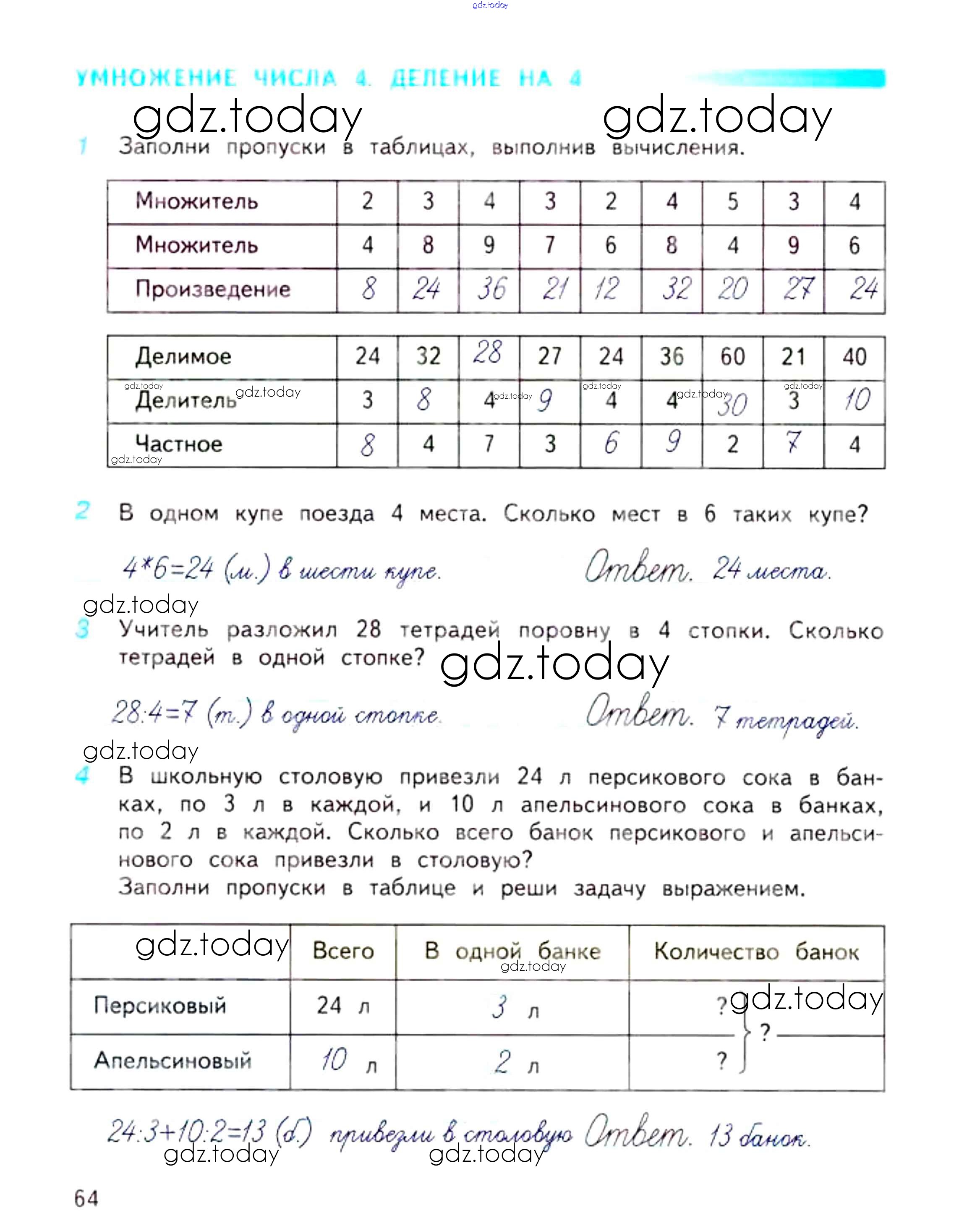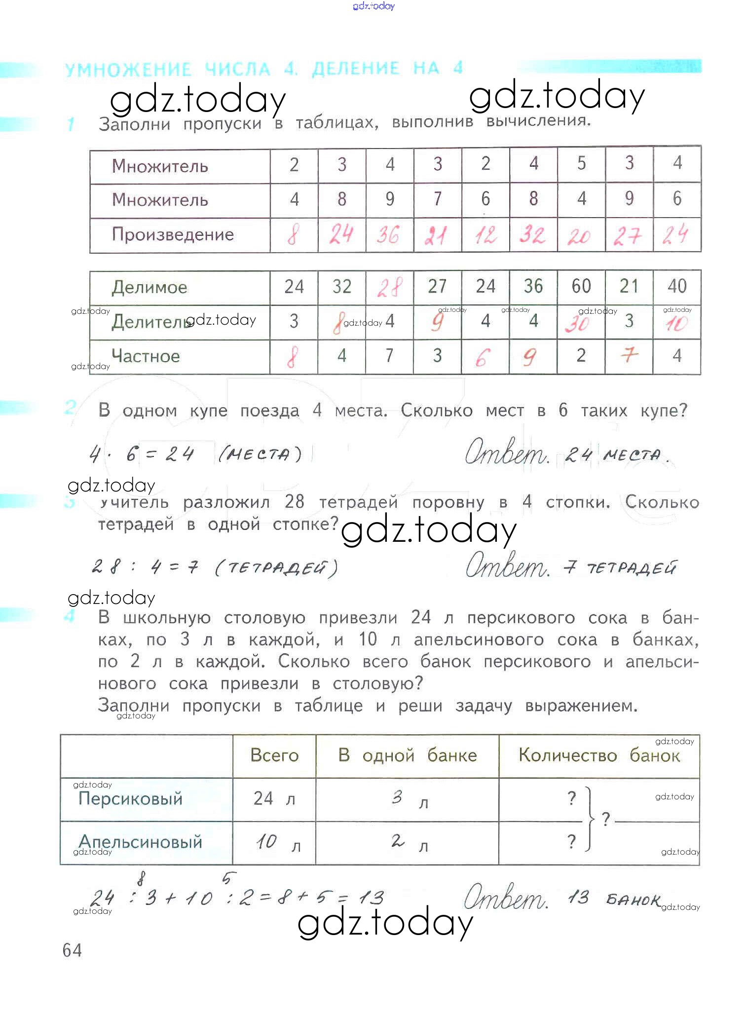 На страницах сайта gdz.today вы найдете учебный и вспомогательный материал, направленный на улучшения знаний школьной программы. ГДЗ - онлайн мир знаний Решение к части 1. Страницы 64 Рабочей тетради по Математике для 3 класса Дорофеев, Миракова Просвещение Перспектива 2017