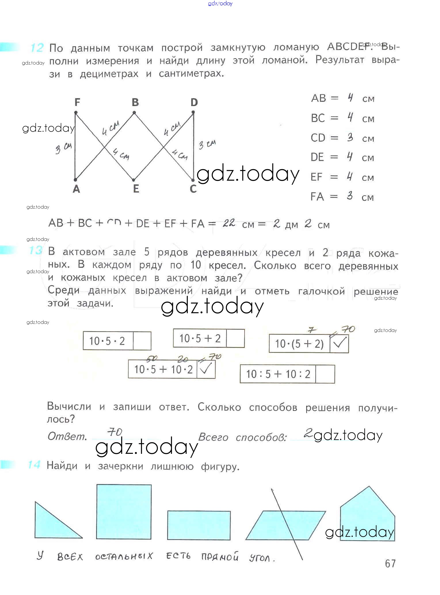 На страницах сайта gdz.today вы найдете учебный и вспомогательный материал, направленный на улучшения знаний школьной программы. ГДЗ - онлайн мир знаний Решение к части 1. Страницы 67 Рабочей тетради по Математике для 3 класса Дорофеев, Миракова Просвещение Перспектива 2017