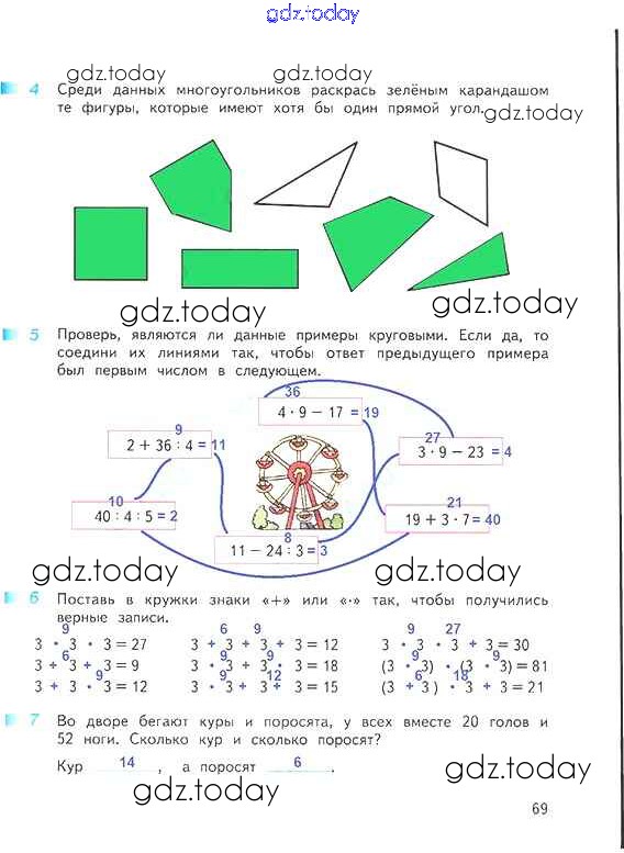 На страницах сайта gdz.today вы найдете учебный и вспомогательный материал, направленный на улучшения знаний школьной программы. ГДЗ - онлайн мир знаний Решение к части 1. Страницы 69 Рабочей тетради по Математике для 3 класса Дорофеев, Миракова Просвещение Перспектива 2017