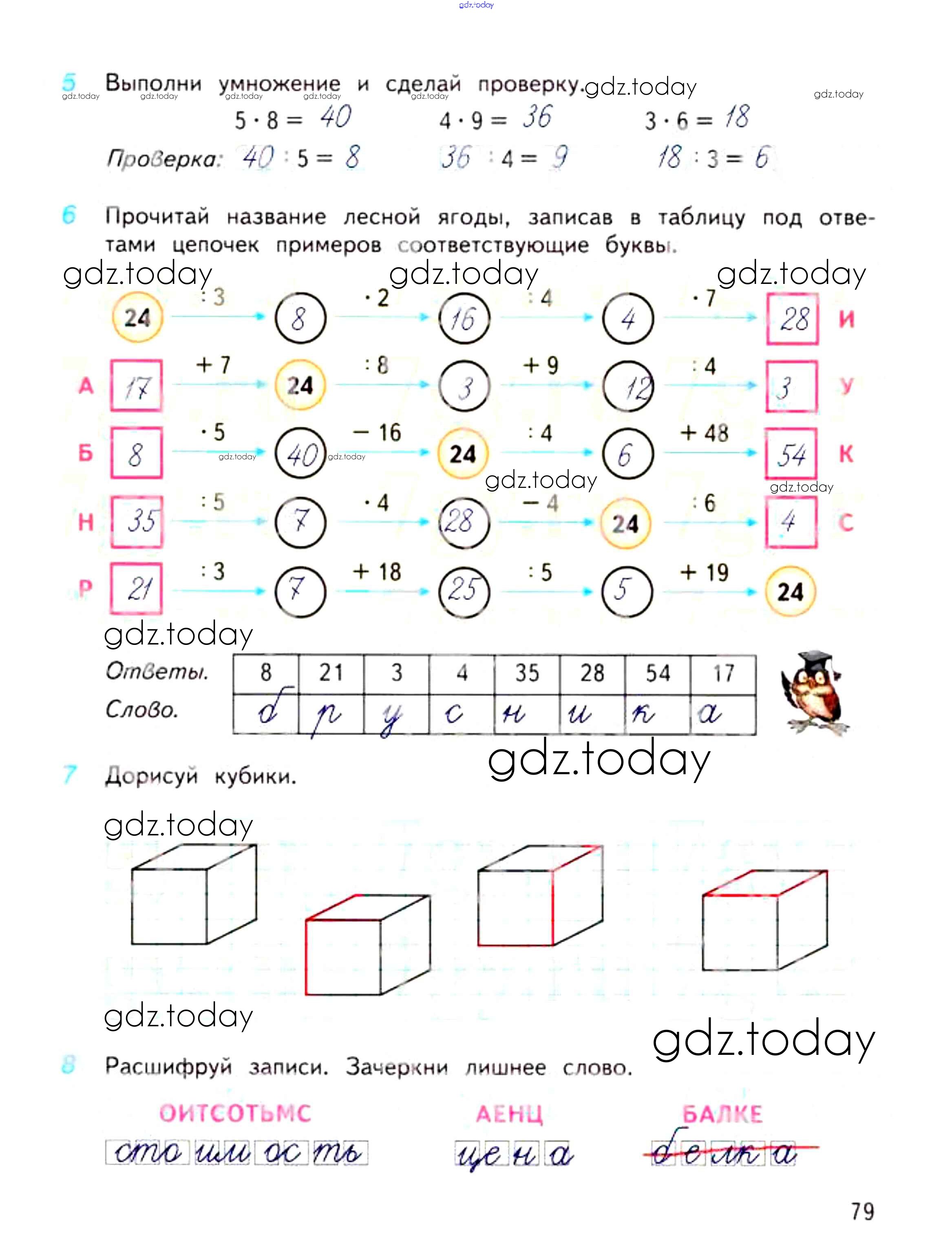 На страницах сайта gdz.today вы найдете учебный и вспомогательный материал, направленный на улучшения знаний школьной программы. ГДЗ - онлайн мир знаний Решение к части 1. Страницы 79 Рабочей тетради по Математике для 3 класса Дорофеев, Миракова Просвещение Перспектива 2017