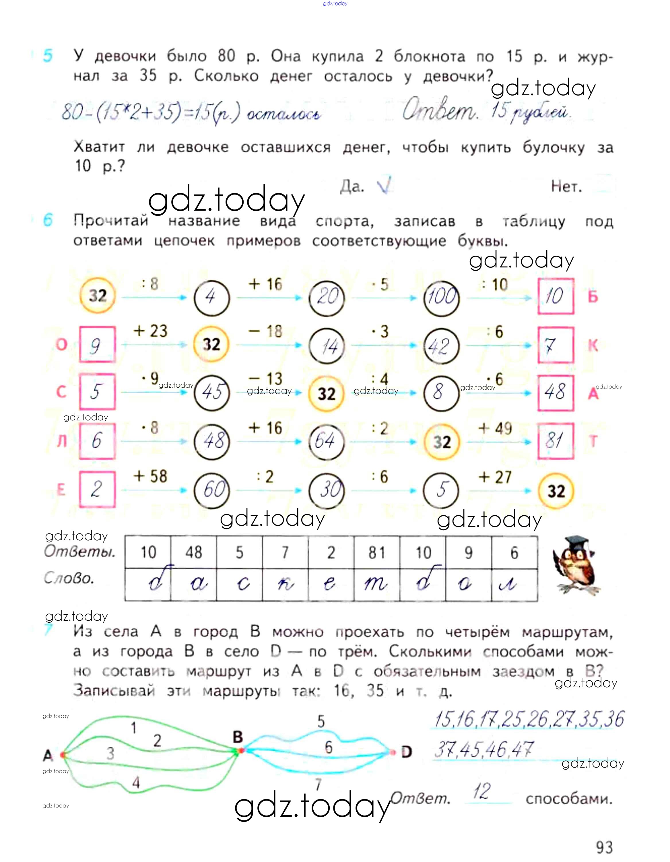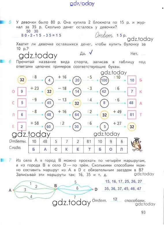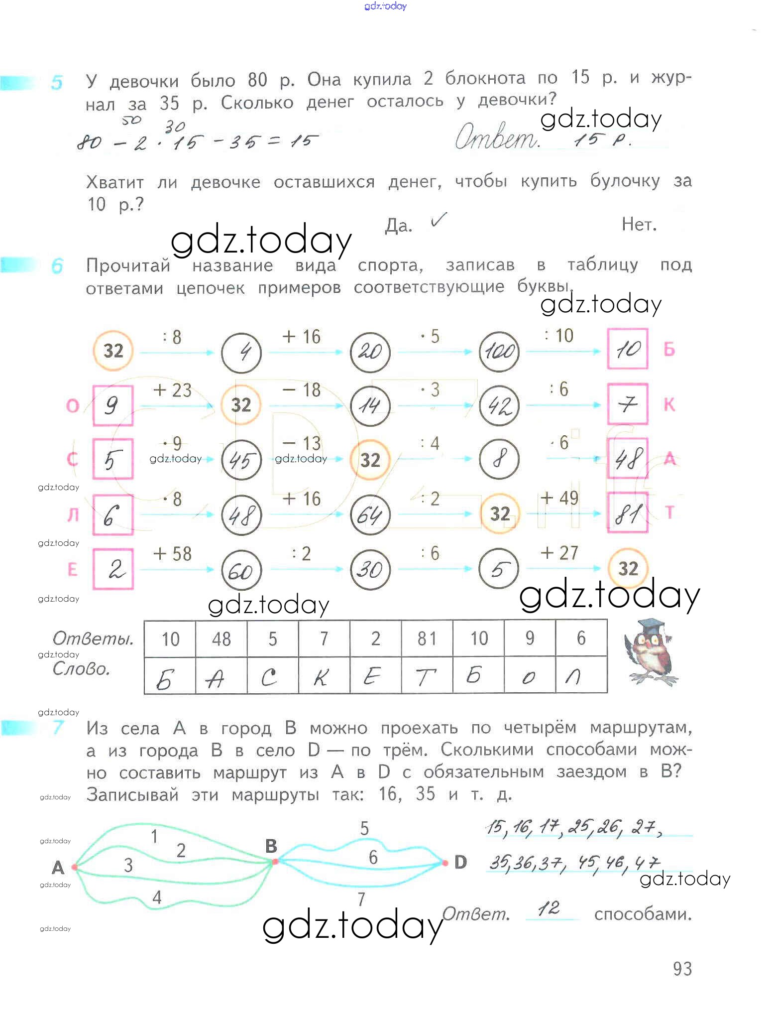Ответы к Решение к части 1. Страницы 93 Рабочей тетради по Математике для 3 класса Дорофеев, Миракова Просвещение Перспектива 2017