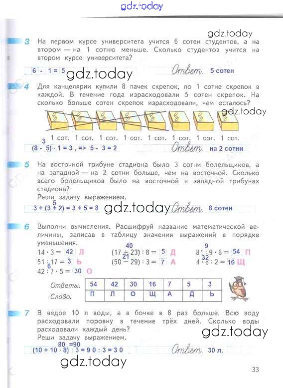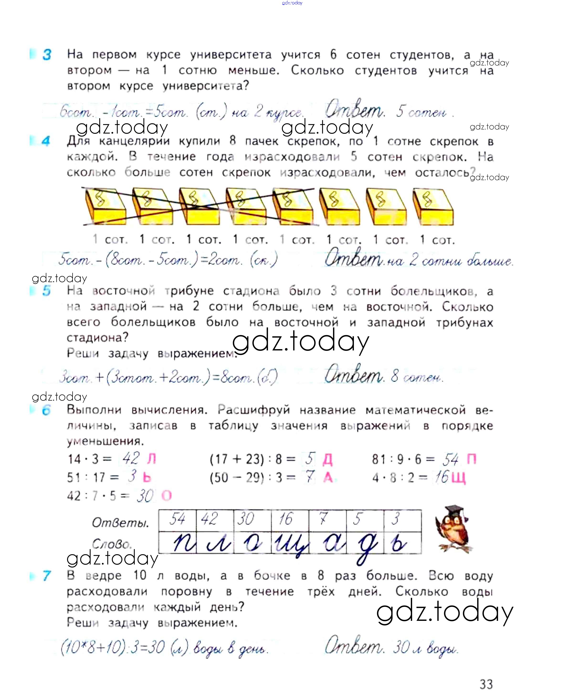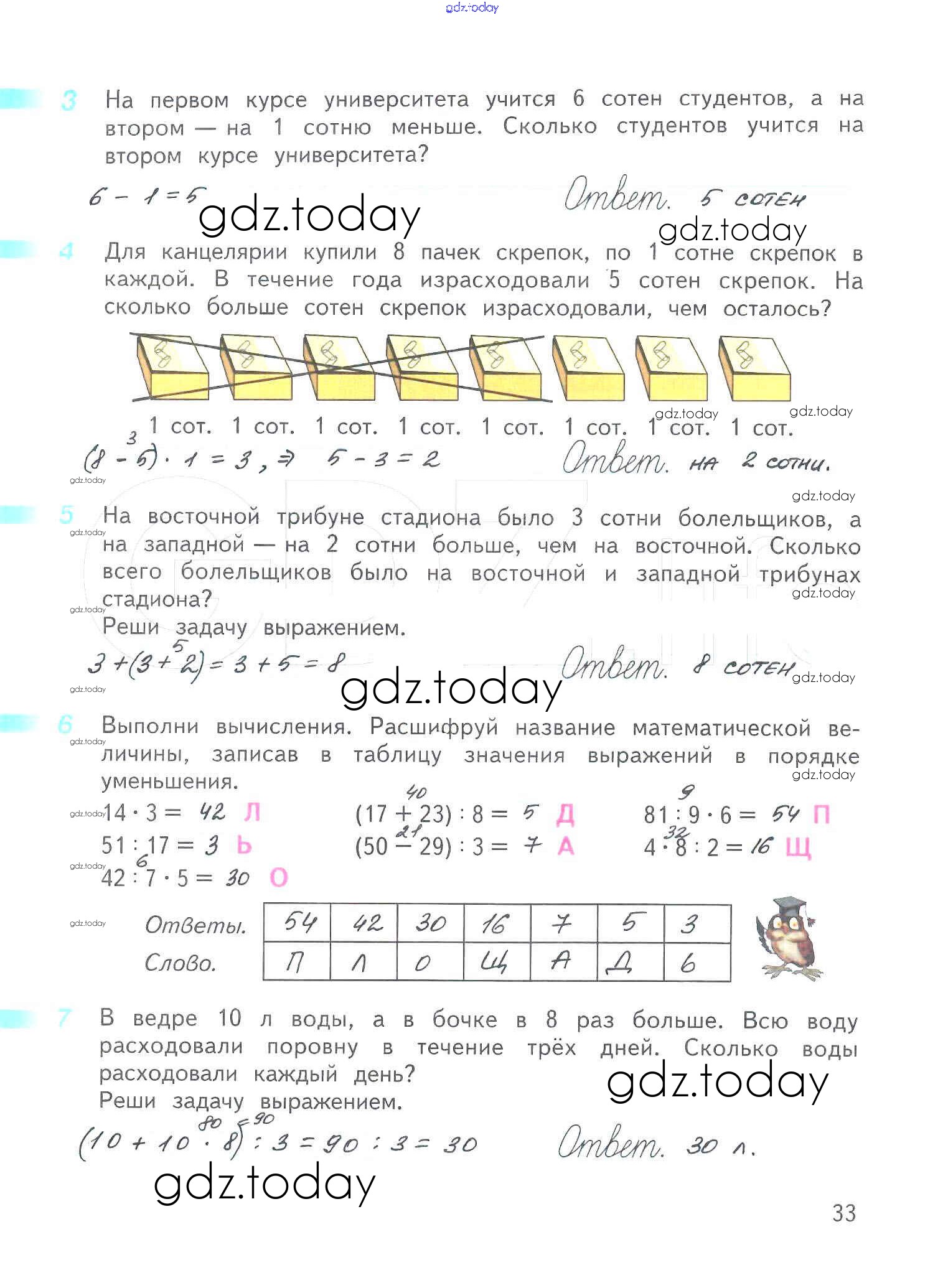 Ответы к Решение к части2. Страницы 33 Рабочей тетради по Математике для 3 класса Дорофеев, Миракова Просвещение Перспектива 2017