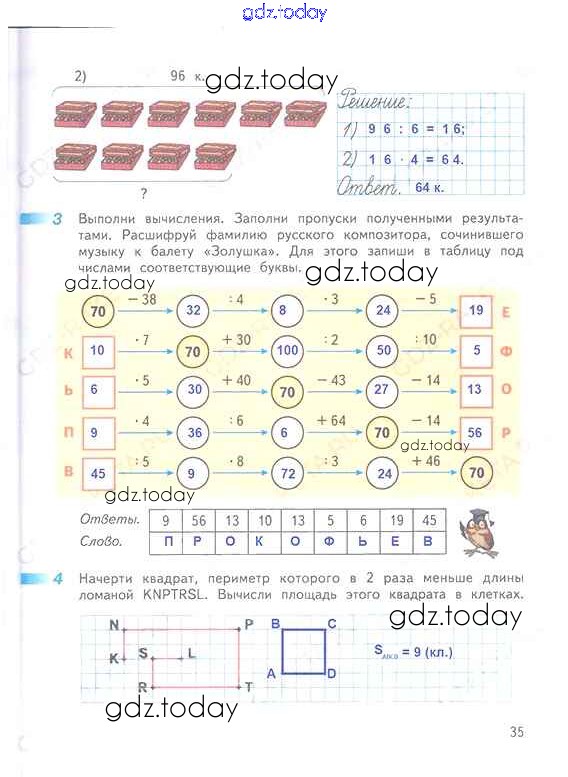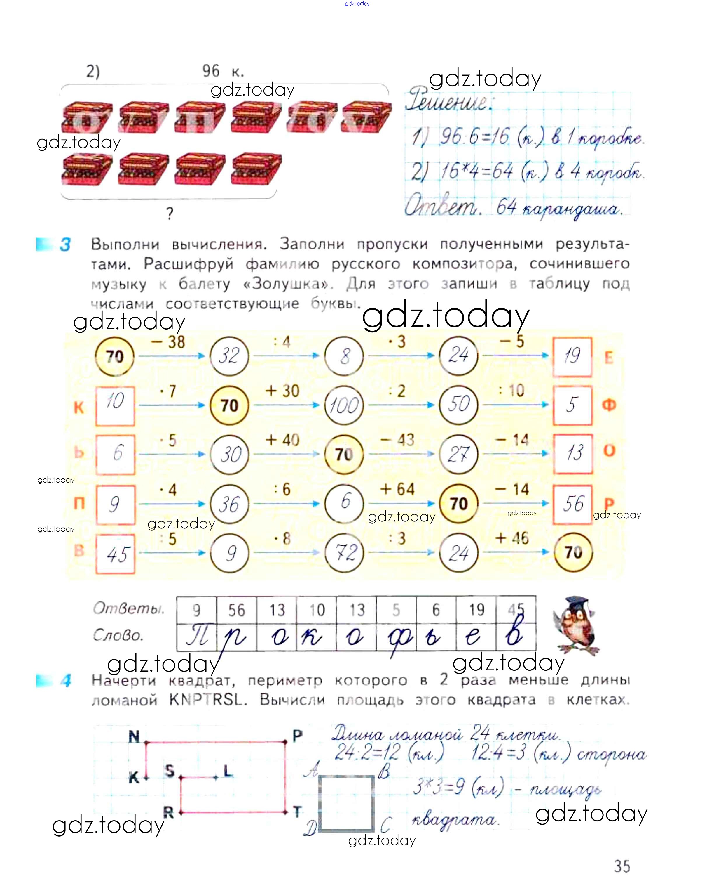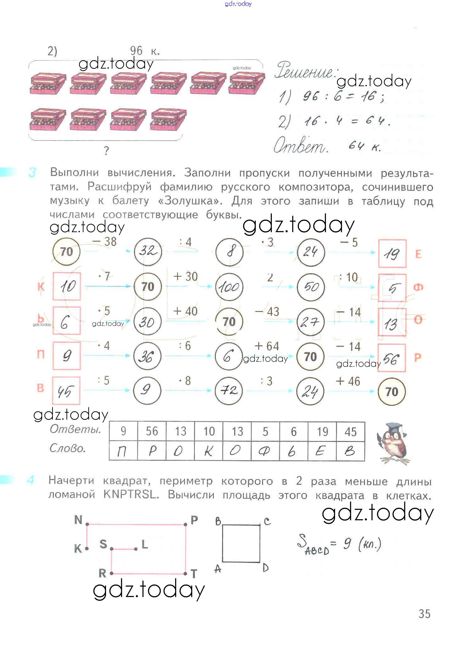 Ответы к Решение к части2. Страницы 35 Рабочей тетради по Математике для 3 класса Дорофеев, Миракова Просвещение Перспектива 2017