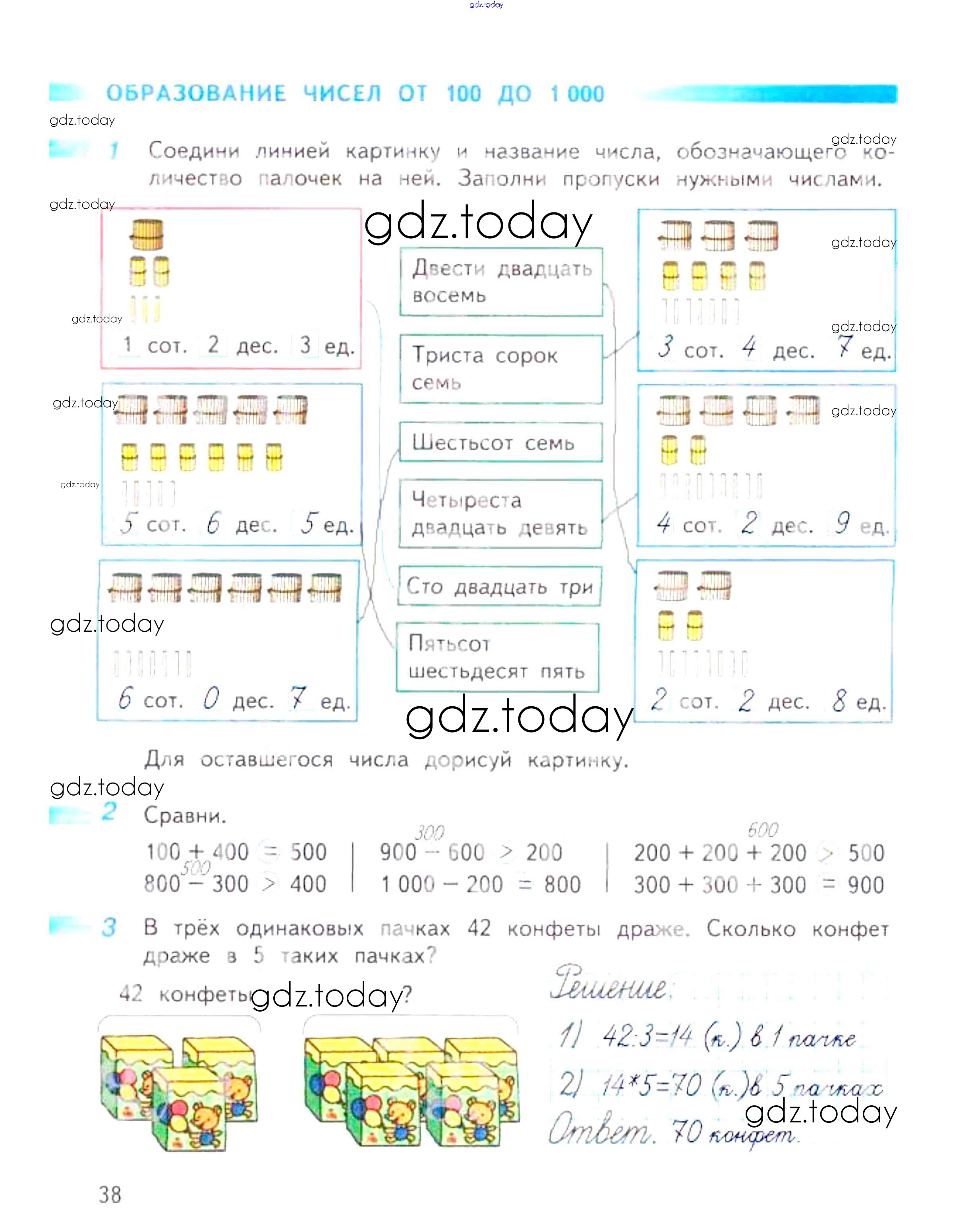 На страницах сайта gdz.today вы найдете учебный и вспомогательный материал, направленный на улучшения знаний школьной программы. ГДЗ - онлайн мир знаний Решение к части2. Страницы 38 Рабочей тетради по Математике для 3 класса Дорофеев, Миракова Просвещение Перспектива 2017