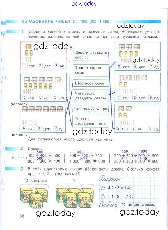 Ответы к Решение к части2. Страницы 38 Рабочей тетради по Математике для 3 класса Дорофеев, Миракова Просвещение Перспектива 2017