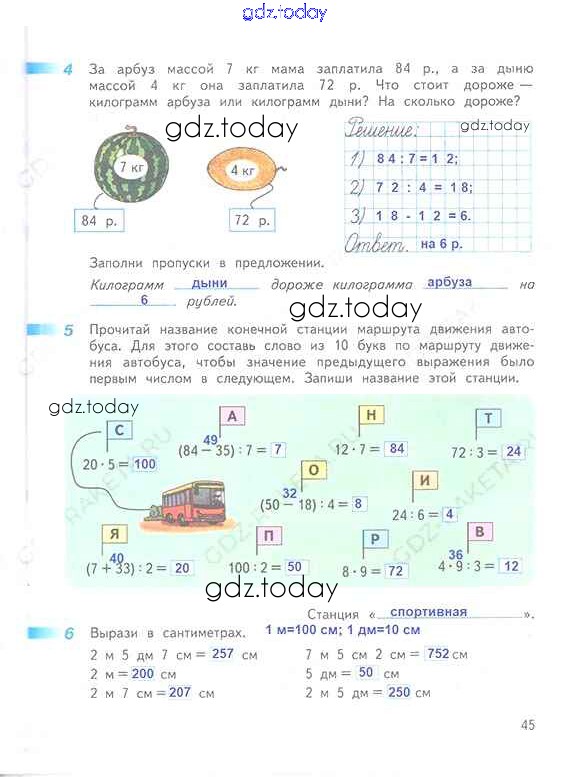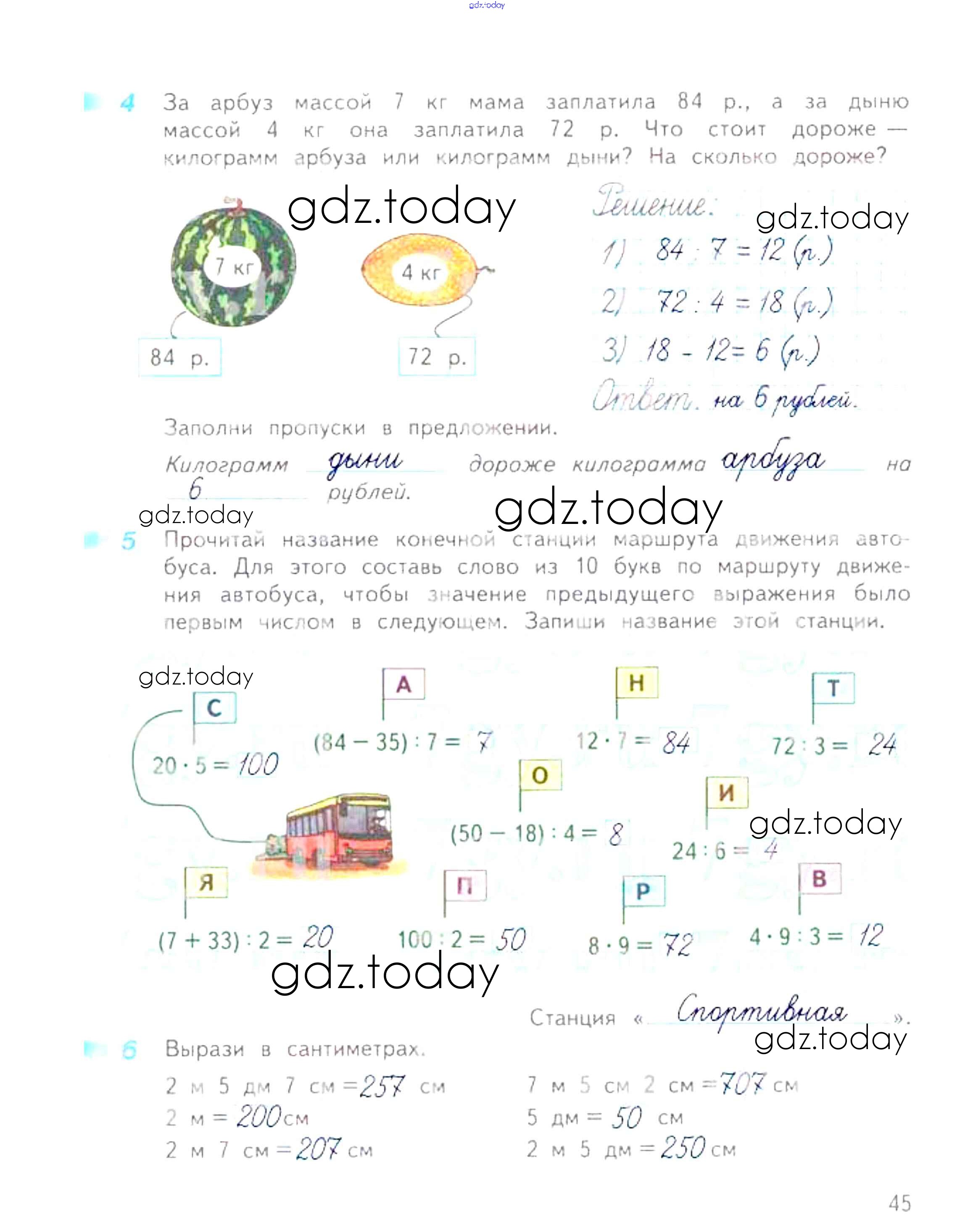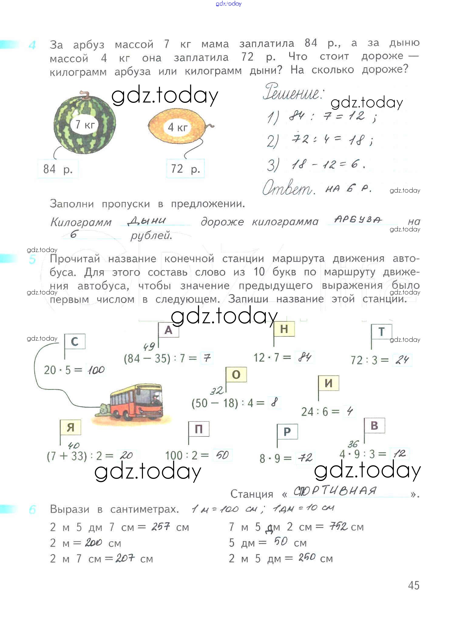 Ответы к Решение к части2. Страницы 45 Рабочей тетради по Математике для 3 класса Дорофеев, Миракова Просвещение Перспектива 2017