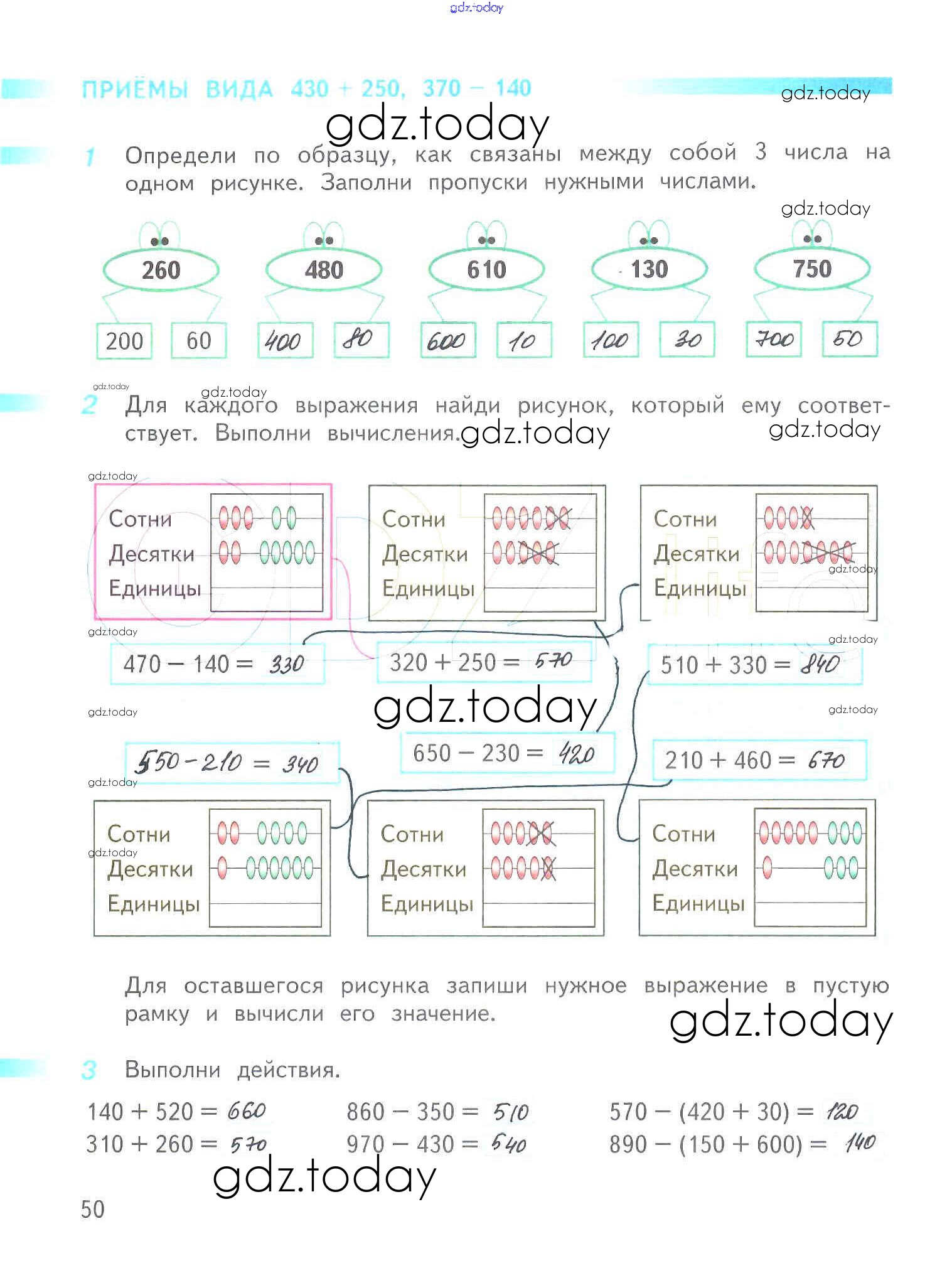 На страницах сайта gdz.today вы найдете учебный и вспомогательный материал, направленный на улучшения знаний школьной программы. ГДЗ - онлайн мир знаний Решение к части2. Страницы 50 Рабочей тетради по Математике для 3 класса Дорофеев, Миракова Просвещение Перспектива 2017